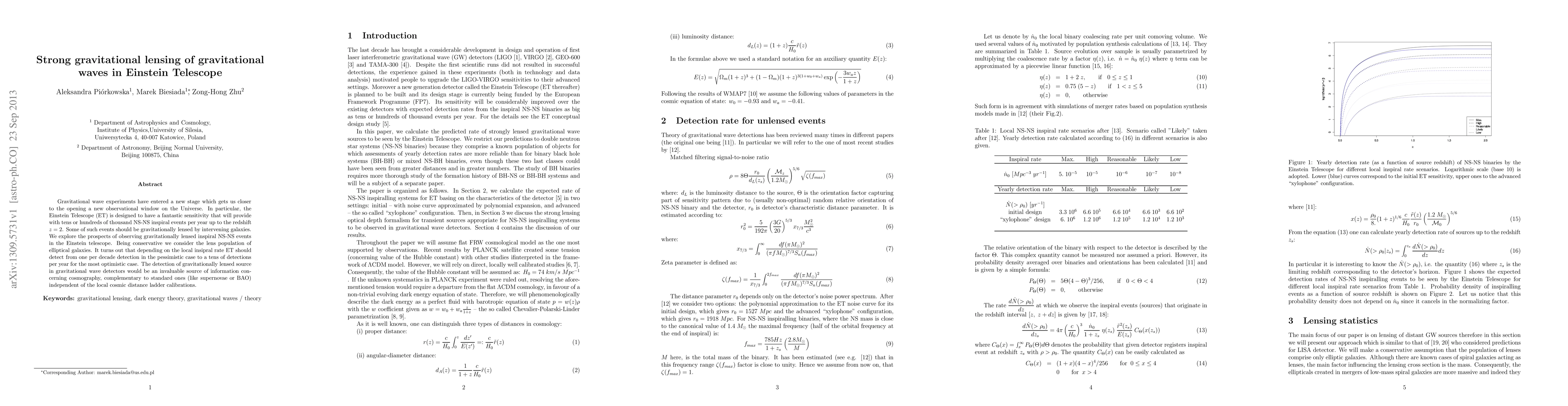 Gravitational wave experiments have entered a new stage which gets us closer to the opening a new observational window on the Universe. In particular, the Einstein Telescope (ET) is designed to have a fantastic sensitivity that will provide with tens or hundreds of thousand NS-NS inspiral events per year up to the redshift z = 2. Some of such events should be gravitationally lensed by intervening galaxies. We explore the prospects of observing gravitationally lensed inspiral NS-NS events in the Einstein telescope. Being conservative we consider the lens population of elliptical galaxies. It turns out that depending on the local insipral rate ET should detect from one per decade detection in the pessimistic case to a tens of detections per year for the most optimistic case. The detection of gravitationally lensed source in gravitational wave detectors would be an invaluable source of information con- cerning cosmography, complementary to standard ones (like supernovae or BAO) independent of the local cosmic distance ladder calibrations.