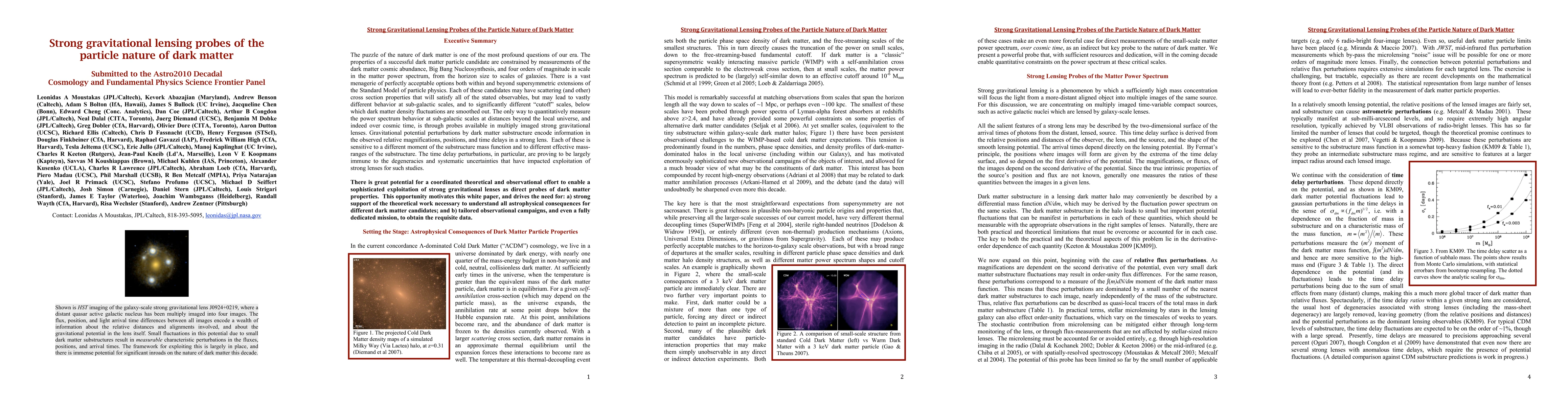 This paper explores how strong gravitational lensing can provide insights into the particle nature of dark matter by probing its behavior at sub-galactic scales. It emphasizes the potential of time delay perturbations in strong lenses to overcome existing degeneracies, advocating for coordinated theoretical and observational efforts to fully exploit this method.