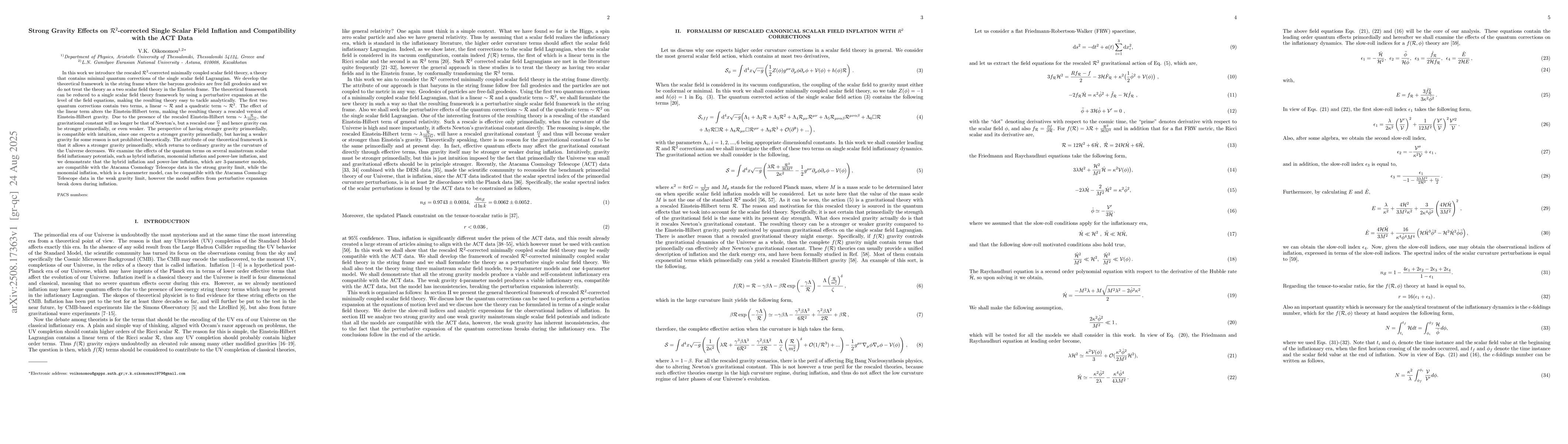 In this work we introduce the rescaled $\mathcal{R}^2$-corrected minimally coupled scalar field theory, a theory that contains minimal quantum corrections of the single scalar field Lagrangian. We develop the theoretical framework in the string frame where the baryons geodesics are free fall geodesics and we do not treat the theory as a two scalar field theory in the Einstein frame. The theoretical framework can be reduced to a single scalar field theory framework by using a perturbative expansion at the level of the field equations, making the resulting theory easy to tackle analytically. The first two quantum corrections contain two terms, a linear $\sim \mathcal{R}$ and a quadratic term $\sim \mathcal{R}^2$. The effect of the linear term alters the Einstein-Hilbert term, making the resulting theory a rescaled version of Einstein-Hilbert gravity. Due to the presence of the rescaled Einstein-Hilbert term $\sim \lambda \frac{\mathcal{R}}{16\pi G}$, the gravitational constant will no longer be that of Newton's, but a rescaled one $\frac{G}{\lambda}$ and hence gravity can be stronger primordially, or even weaker. The perspective of having stronger gravity primordially, is compatible with intuition, since one expects a stronger gravity primordially, but having a weaker gravity for some reason is not prohibited theoretically. The attribute of our theoretical framework is that it allows a stronger gravity primordially, which returns to ordinary gravity as the curvature of the Universe decreases. We examine the effects of the quantum terms on several mainstream scalar field inflationary potentials, such as hybrid inflation, monomial inflation and power-law inflation.