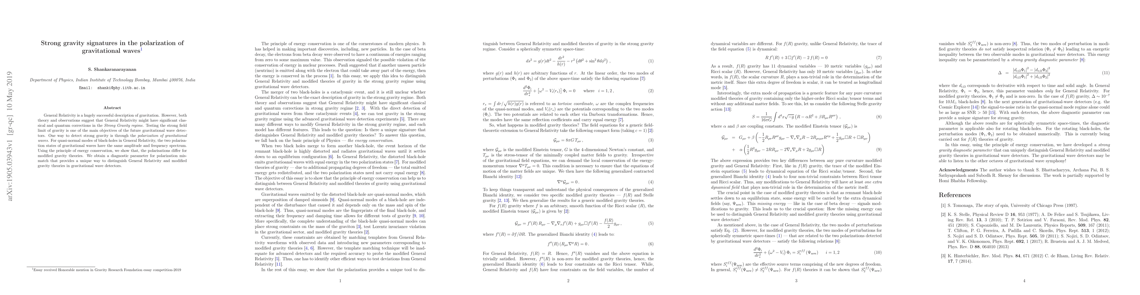 This paper explores how gravitational wave polarization can reveal strong gravity signatures, suggesting that modified gravity theories may differ from General Relativity in polarization states. A diagnostic parameter for polarization mismatch is proposed to distinguish between General Relativity and modified gravity theories using future gravitational wave detectors.