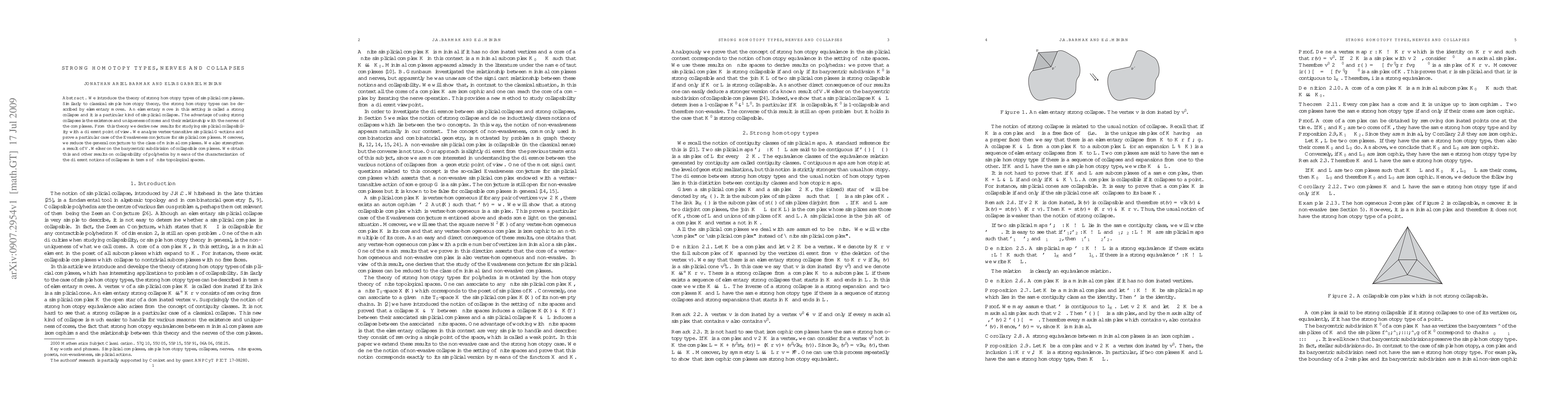 This paper introduces the theory of strong homotopy types for simplicial complexes, describing them through strong collapses, which have unique cores and relate to the nerves of complexes. It derives new results on simplicial collapsibility and proves a case of the Evasiveness conjecture, reducing the general conjecture to minimal complexes.