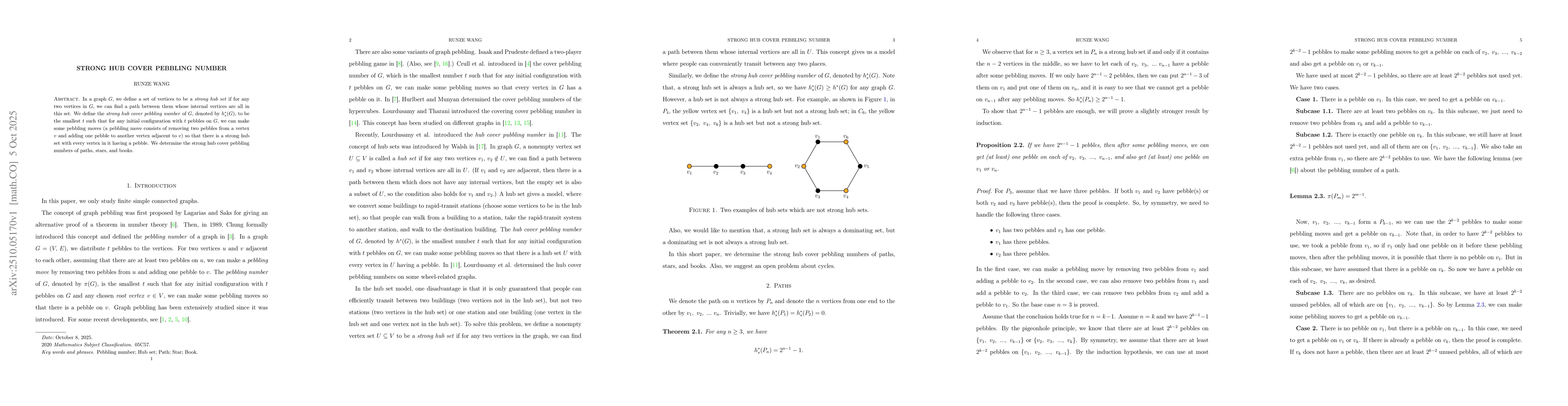 The paper introduces the strong hub cover pebbling number, provides rigorous proofs for specific graph structures, and establishes lemmas that support the calculation of pebbling numbers for paths and books.