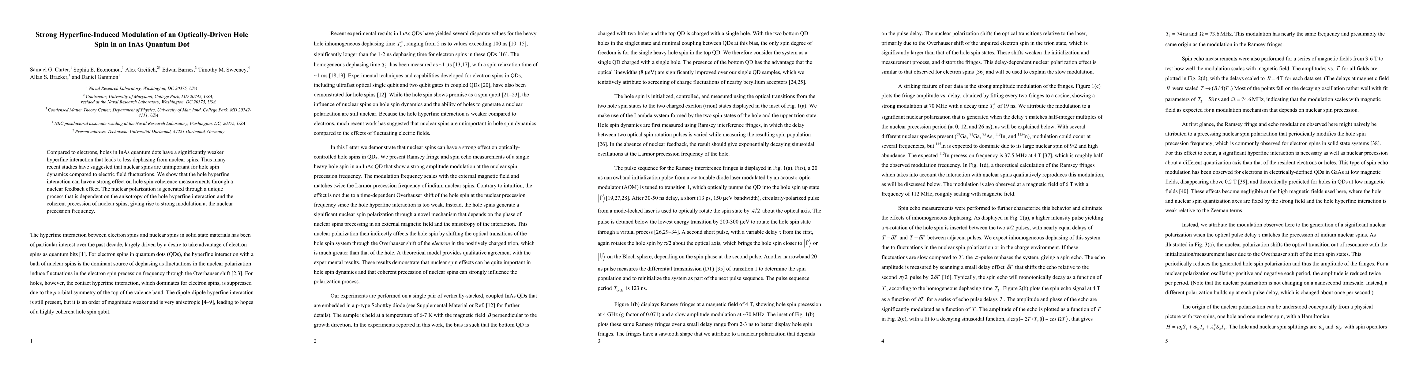 Compared to electrons, holes in InAs quantum dots have a significantly weaker hyperfine interaction that leads to less dephasing from nuclear spins. Thus many recent studies have suggested that nuclear spins are unimportant for hole spin dynamics compared to electric field fluctuations. We show that the hole hyperfine interaction can have a strong effect on hole spin coherence measurements through a nuclear feedback effect. The nuclear polarization is generated through a unique process that is dependent on the anisotropy of the hole hyperfine interaction and the coherent precession of nuclear spins, giving rise to strong modulation at the nuclear precession frequency.