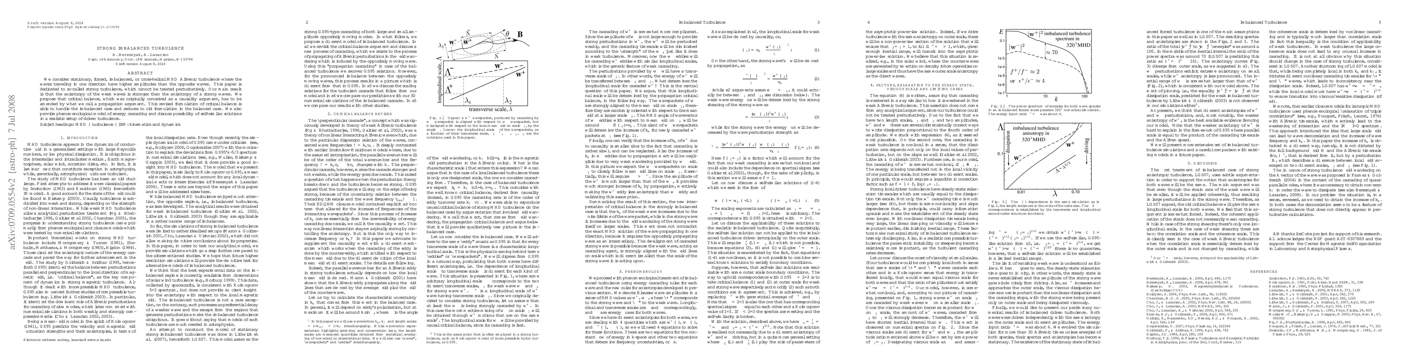 This paper explores strong imbalanced turbulence in MHD Alfvenic waves, demonstrating that weak waves exhibit more anisotropy than strong waves. It proposes an amended propagation argument for critical balance to handle the imbalanced case, extending beyond the original causality-based formulation.