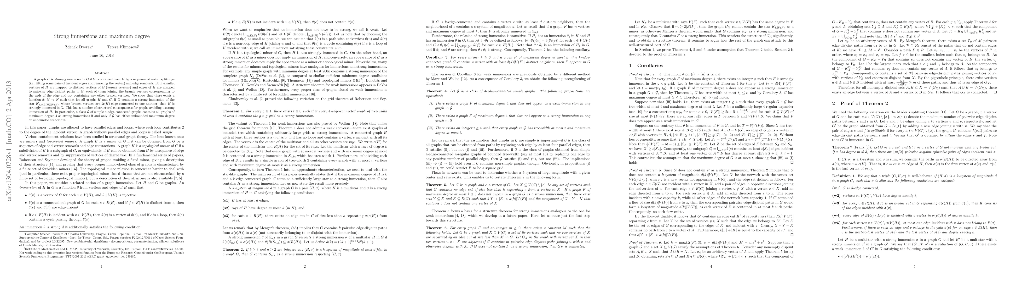 A graph H is strongly immersed in G if G is obtained from H by a sequence of vertex splittings (i.e., lifting some pairs of incident edges and removing the vertex) and edge removals. Equivalently, vertices of H are mapped to distinct vertices of G (branch vertices) and edges of H are mapped to pairwise edge-disjoint paths in G, each of them joining the branch vertices corresponding to the ends of the edge and not containing any other branch vertices. We show that there exists a function d:N->N such that for all graphs H and G, if G contains a strong immersion of the star K_{1,d(Delta(H))|V(H)|} whose branch vertices are Delta(H)-edge-connected to one another, then H is strongly immersed in G. This has a number of structural consequences for graphs avoiding a strong immersion of H. In particular, a class C of simple 4-edge-connected graphs contains all graphs of maximum degree 4 as strong immersions if and only if C has either unbounded maximum degree or unbounded tree-width.