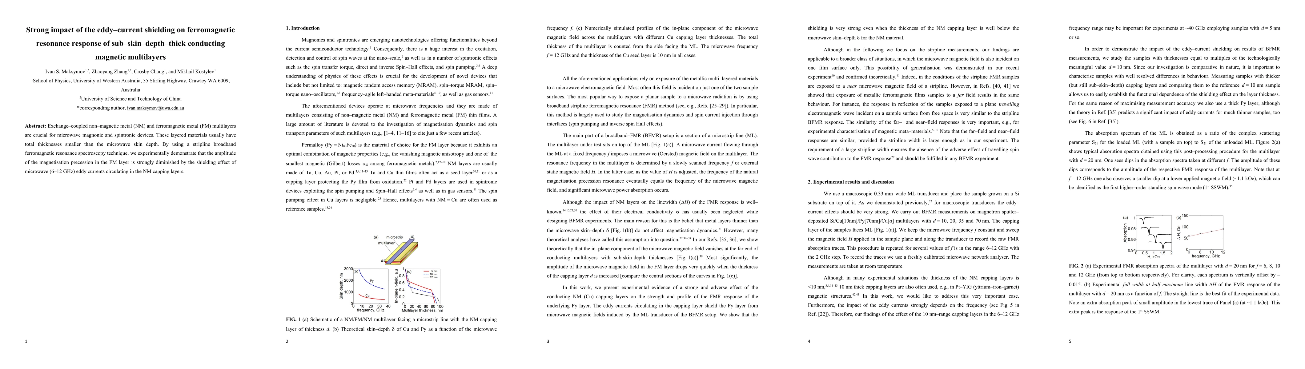 This paper experimentally and theoretically demonstrates that eddy currents in nonmagnetic capping layers significantly shield sub-skin-depth ferromagnetic layers from dynamic magnetic fields, greatly reducing magnetization precession in broadband ferromagnetic resonance measurements. This effect is particularly pronounced at high microwave frequencies, impacting the design of future spintronic devices.