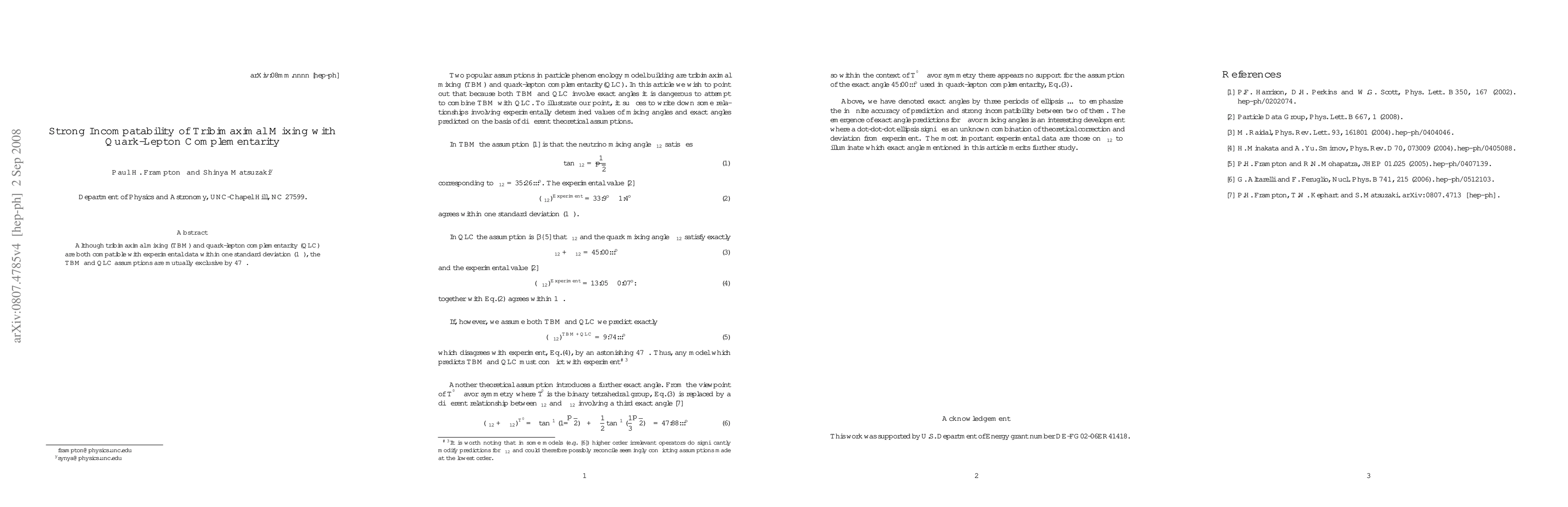 Summary: Tribimaximal mixing (TBM) and quark-lepton complementarity (QLC) are both consistent with experimental data but are mutually exclusive at a $56 \sigma$ level, indicating strong incompatibility between the two assumptions.