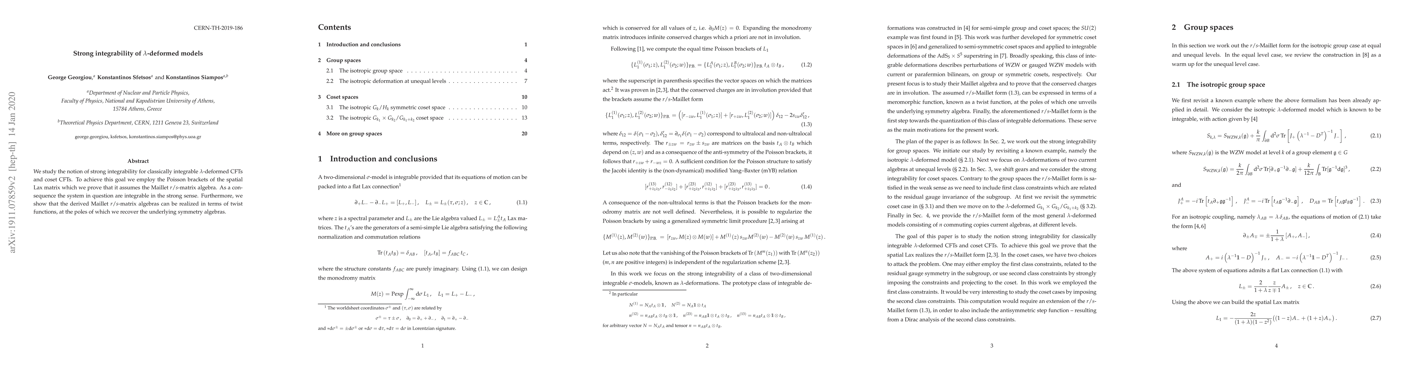 We study the notion of strong integrability for classically integrable $\lambda$-deformed CFTs and coset CFTs. To achieve this goal we employ the Poisson brackets of the spatial Lax matrix which we prove that it assumes the Maillet $r/s$-matrix algebra. As a consequence the system in question are integrable in the strong sense. Furthermore, we show that the derived Maillet $r/s$-matrix algebras can be realized in terms of twist functions, at the poles of which we recover the underlying symmetry algebras.