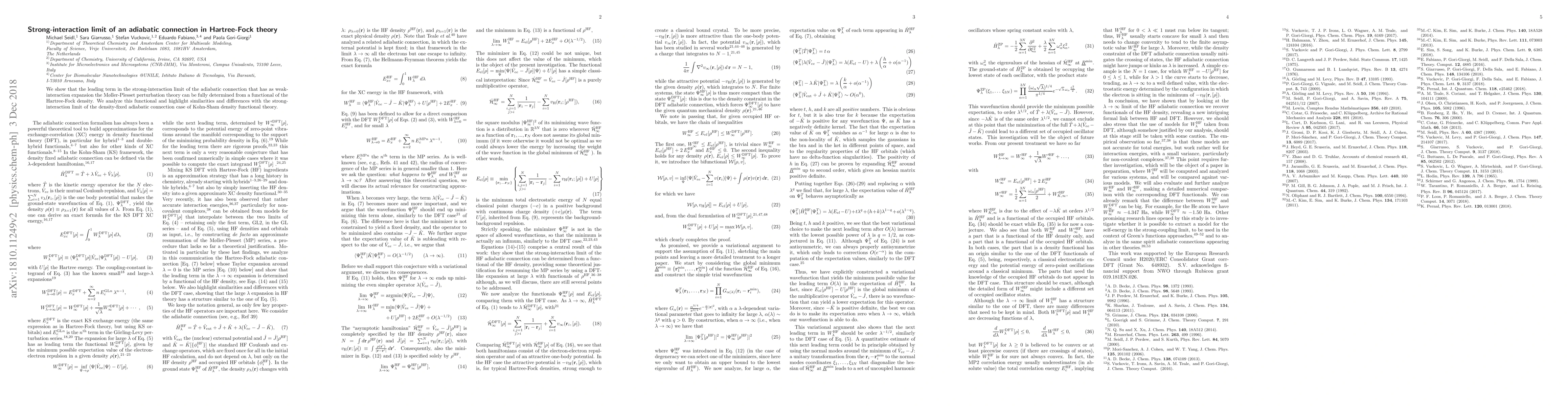 This paper determines the leading term in the strong-interaction limit of the adiabatic connection in Hartree-Fock theory, showing it can be derived from a functional of the Hartree-Fock density. It also compares this with the strong-interaction limit in Kohn-Sham density functional theory.