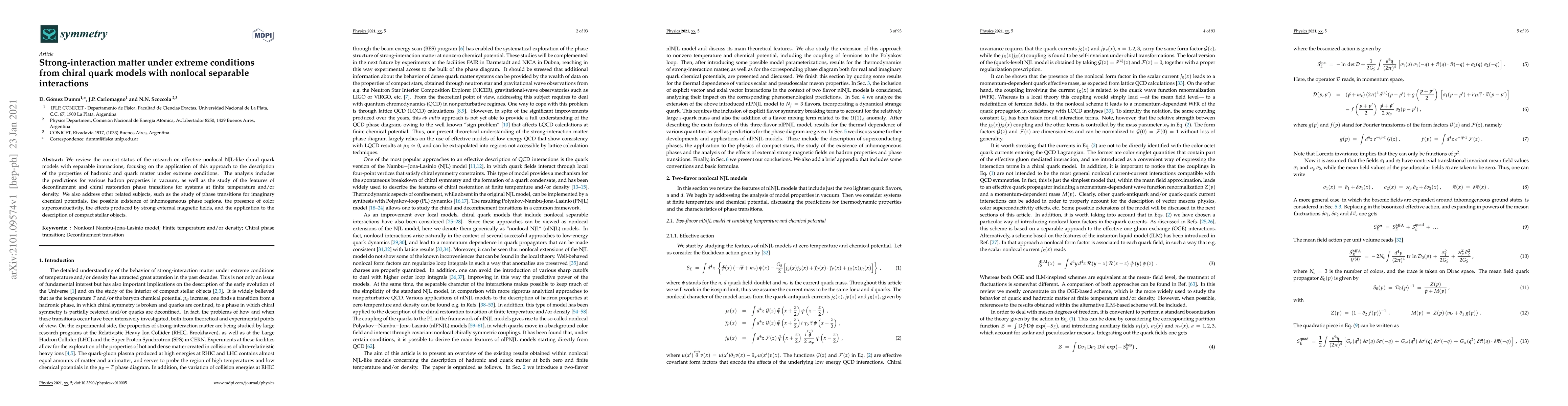 This paper reviews chiral quark models with nonlocal separable interactions to describe strong-interaction matter under extreme conditions, including predictions for hadron properties and studies on deconfinement, chiral restoration, and color superconductivity in dense and magnetic environments. It also explores phase transitions and compact stellar objects.