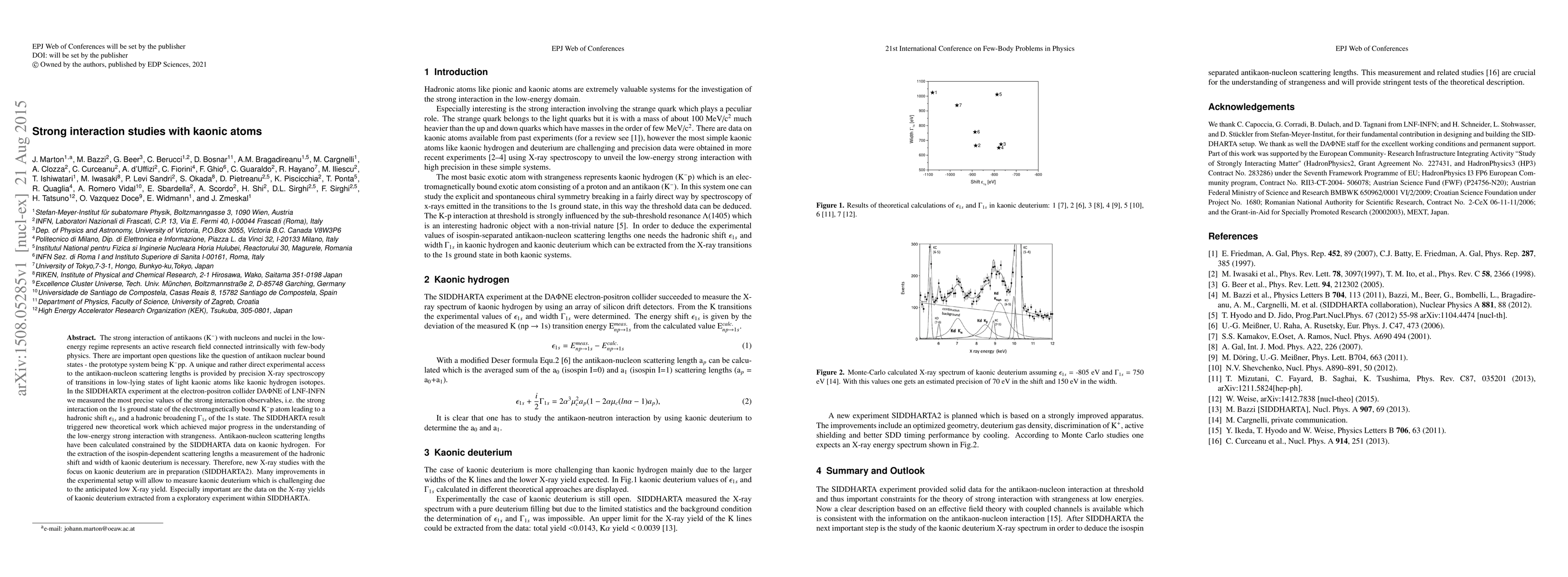 The SIDDHARTA experiment at DA?NE provides precise measurements of strong interaction observables in kaonic hydrogen, leading to significant advancements in understanding low-energy antikaon-nucleon interactions. Future SIDDHARTA2 experiments aim to measure kaonic deuterium to extract isospin-dependent scattering lengths and improve the experimental setup to handle the low X-ray yield challenges.