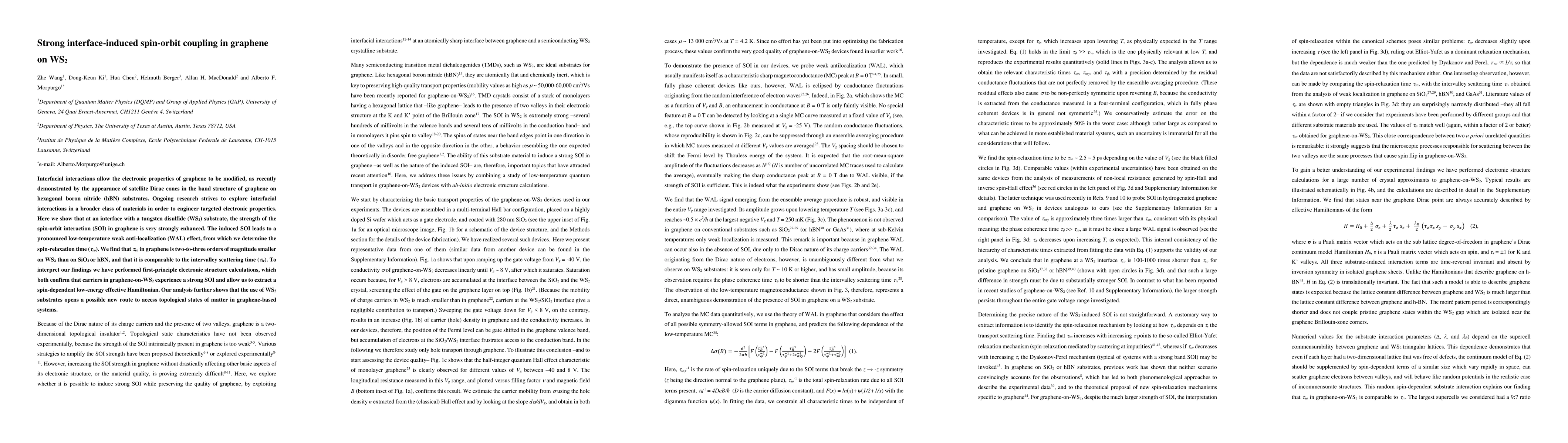 This paper demonstrates that graphene on a WS2 substrate exhibits significantly enhanced spin-orbit interaction, leading to a pronounced weak anti-localization effect at low temperatures. First-principle calculations confirm the strong spin-orbit coupling and suggest a new pathway to explore topological states in graphene-based systems.