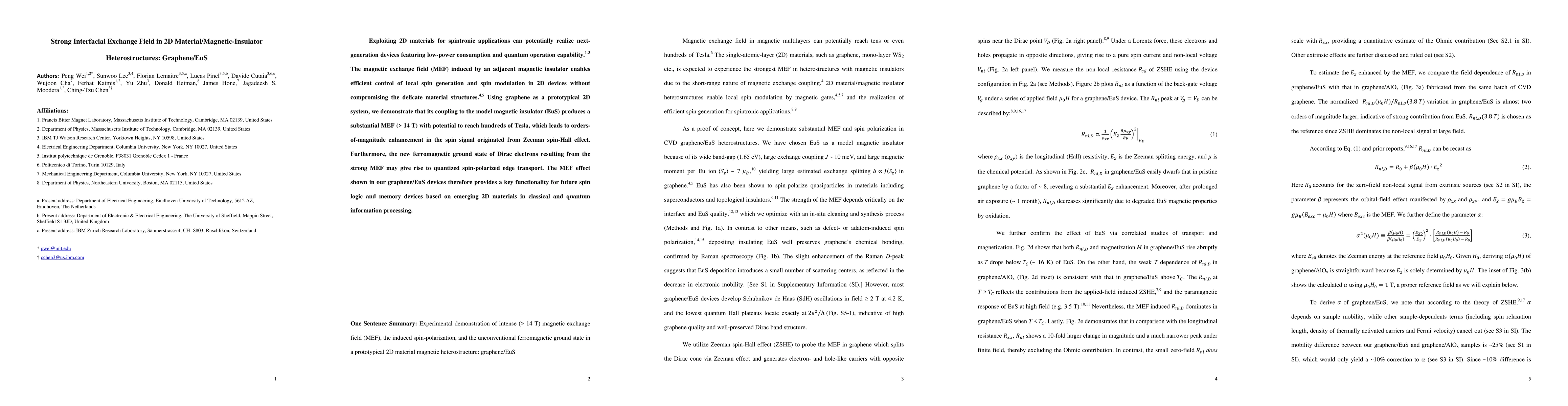 Researchers found a strong interfacial exchange field in graphene/EuS heterostructures, enabling efficient control of spin generation and modulation with potential to reach hundreds of Tesla. This discovery has key implications for future spin logic and memory devices based on emerging 2D materials.