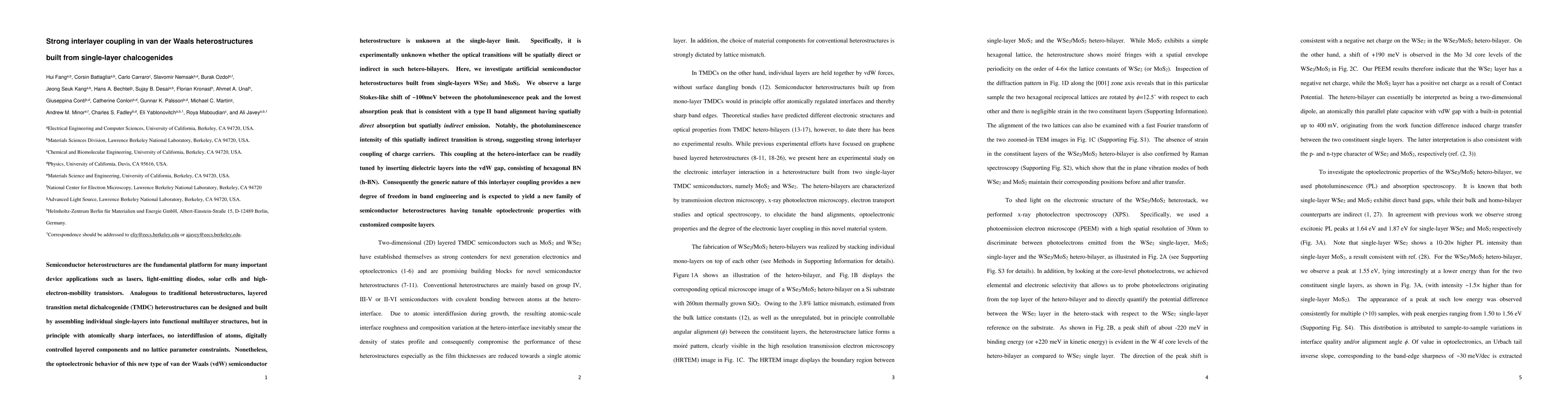 The research investigates van der Waals heterostructures made from single-layer WSe2 and MoS2, discovering a large Stokes-like shift indicating a type II band alignment with strong interlayer carrier coupling. This coupling, adjustable with h-BN layers, offers new opportunities for band engineering and customizable optoelectronic properties in these semiconductor heterostructures.