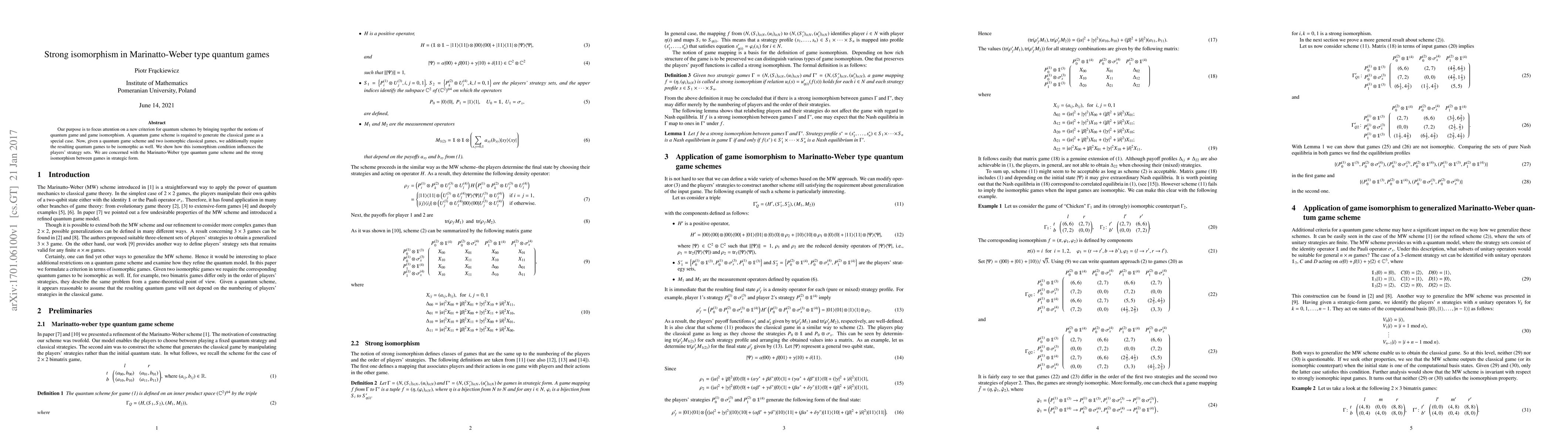 This paper introduces a new criterion for Marinatto-Weber type quantum game schemes, requiring that quantum games derived from isomorphic classical games remain isomorphic. The study explores how this strong isomorphism condition affects players' strategy sets.