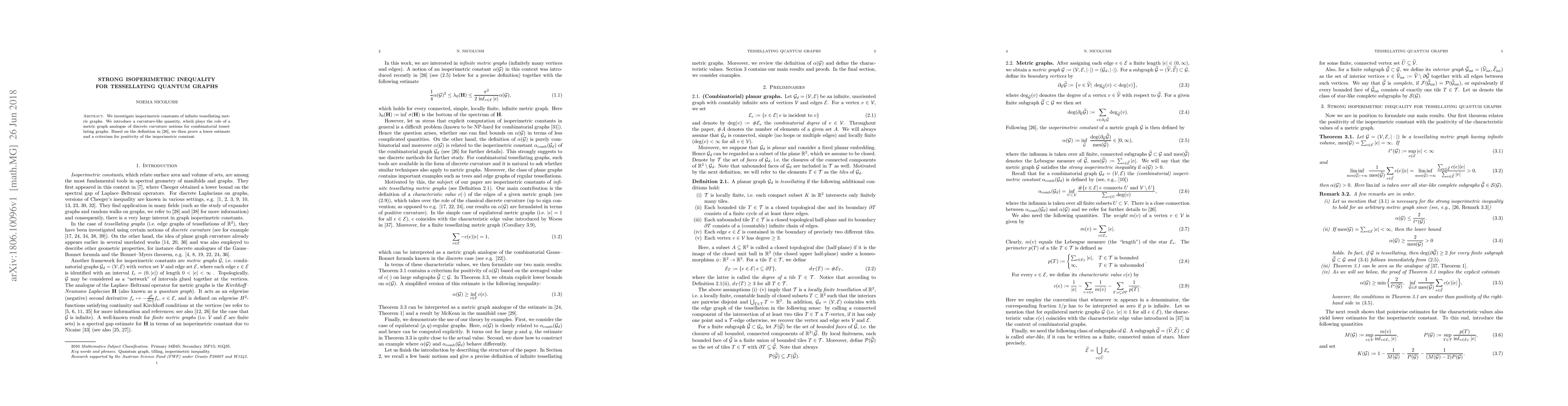 This paper explores isoperimetric constants in infinite tessellating metric graphs, introducing a curvature-like quantity analogous to discrete curvature. It establishes a lower estimate and a criterion for the positivity of the isoperimetric constant.