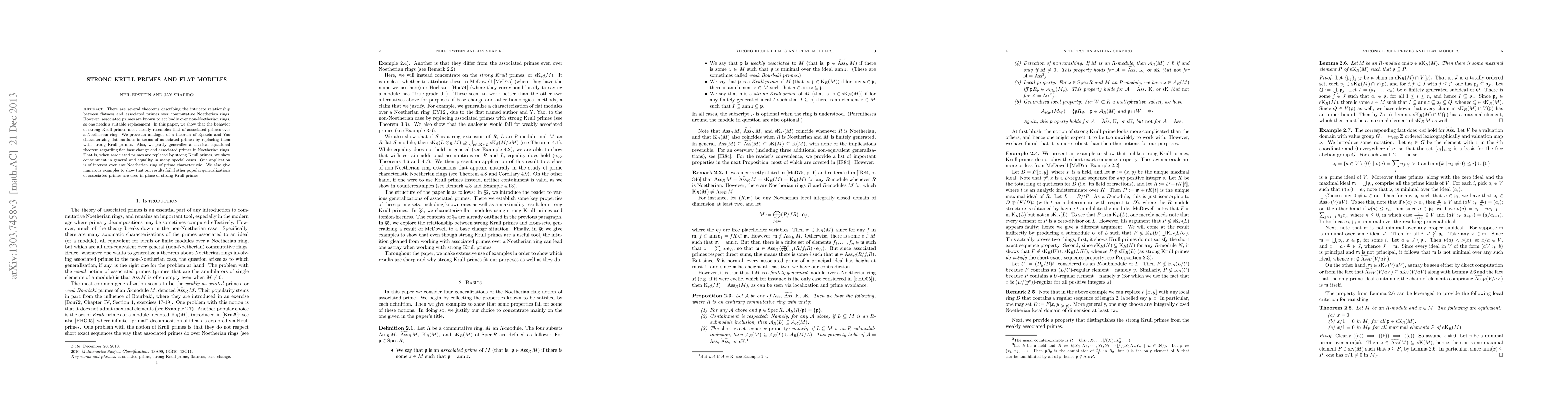 There are several theorems describing the intricate relationship between flatness and associated primes over commutative Noetherian rings. However, associated primes are known to act badly over non-Noetherian rings, so one needs a suitable replacement. In this paper, we show that the behavior of strong Krull primes most closely resembles that of associated primes over a Noetherian ring. We prove an analogue of a theorem of Epstein and Yao characterizing flat modules in terms of associated primes by replacing them with strong Krull primes. Also, we partly generalize a classical equational theorem regarding flat base change and associated primes in Noetherian rings. That is, when associated primes are replaced by strong Krull primes, we show containment in general and equality in many special cases. One application is of interest over any Noetherian ring of prime characteristic. We also give numerous examples to show that our results fail if other popular generalizations of associated primes are used in place of strong Krull primes.