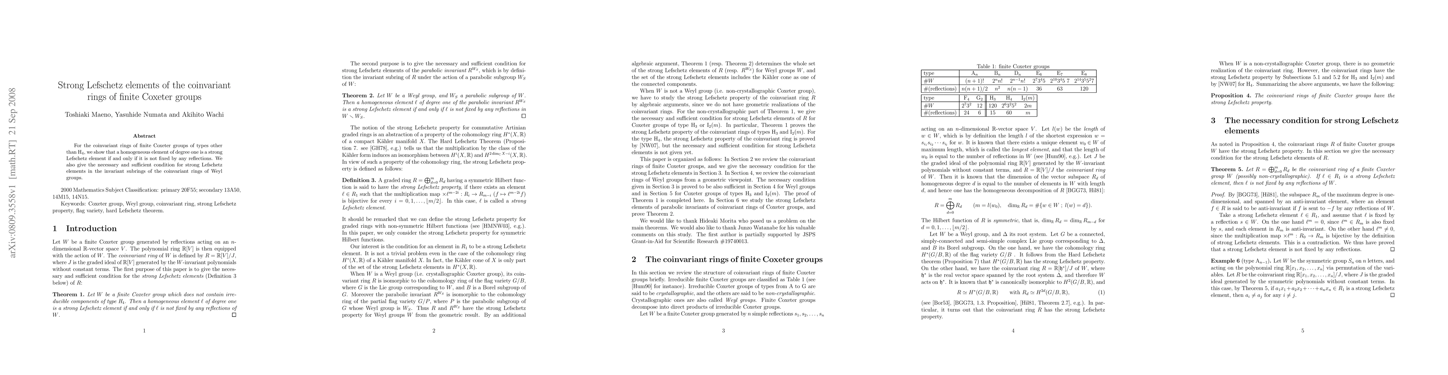 This paper demonstrates that in coinvariant rings of finite Coxeter groups (except type H$_4$), a degree one homogeneous element is a strong Lefschetz element if and only if it is not invariant under any reflections. It also provides a comprehensive condition for strong Lefschetz elements in the invariant subrings of these coinvariant rings.