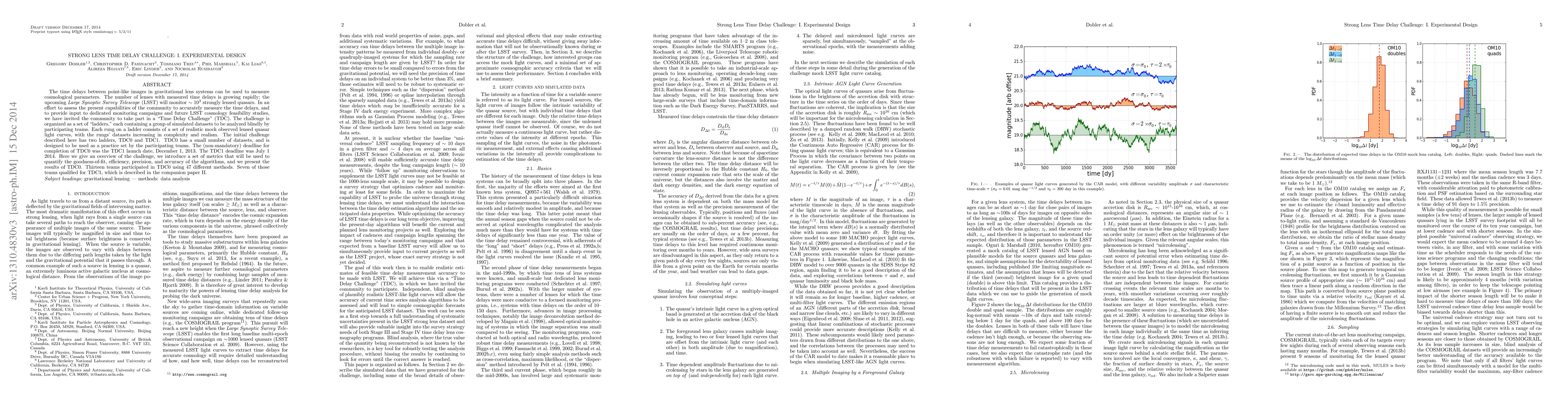 This paper outlines the "Time Delay Challenge" (TDC) designed to assess the community's ability to measure time delays in gravitational lens systems, crucial for cosmological parameter estimation. The challenge includes two ladders of simulated datasets, with TDC0 serving as a practice set and TDC1 as the main event, aiming to prepare for the Large Synoptic Survey Telescope's monitoring of strongly lensed quasars.