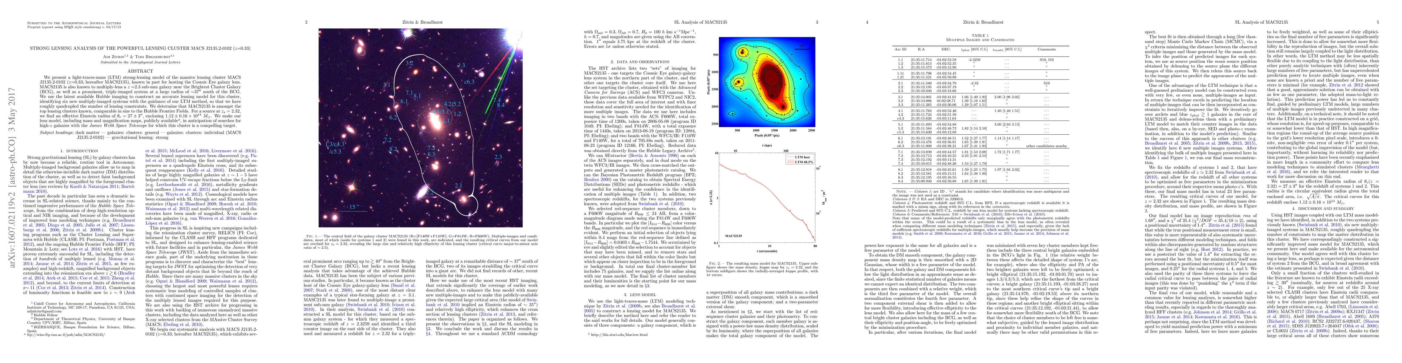 We present a light-traces-mass (LTM) strong-lensing model of the massive lensing cluster MACS J2135.2-0102 ($z$=0.33; hereafter MACS2135), known in part for hosting the Cosmic Eye galaxy lens. MACS2135 is also known to multiply-lens a $z=$2.3 sub-mm galaxy near the Brightest Cluster Galaxy (BCG), as well as a prominent, triply-imaged system at a large radius of $\sim$37" south of the BCG. We use the latest available Hubble imaging to construct an accurate lensing model for this cluster, identifying six new multiply-imaged systems with the guidance of our LTM method, so that we have roughly quadrupled the number of lensing constraints. We determine that MACS2135 is amongst the top lensing clusters known, comparable in size to the Hubble Frontier Fields. For a source at $z_{s}=2.32$, we find an effective Einstein radius of $\theta_{e}=27\pm3$", enclosing $1.12 \pm0.16 \times10^{14}$ $M_{\odot}$. We make our lens model, including mass and magnification maps, publicly available, in anticipation of searches for high-$z$ galaxies with the James Webb Space Telescope for which this cluster is a compelling target.