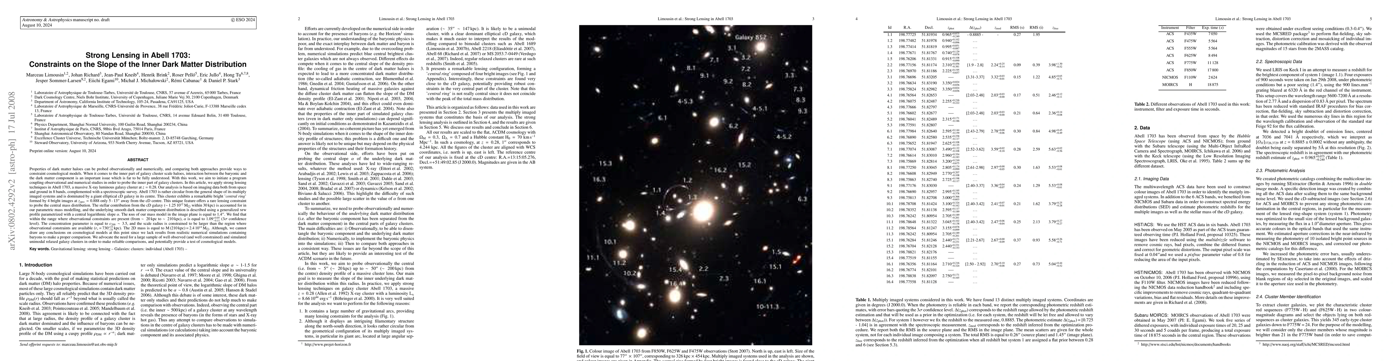This paper uses strong lensing in the galaxy cluster Abell 1703 to determine the inner dark matter distribution slope, finding it to be 1.09 ± 0.05 within the observational range. The study highlights the need for more simulated clusters to test cosmological models.