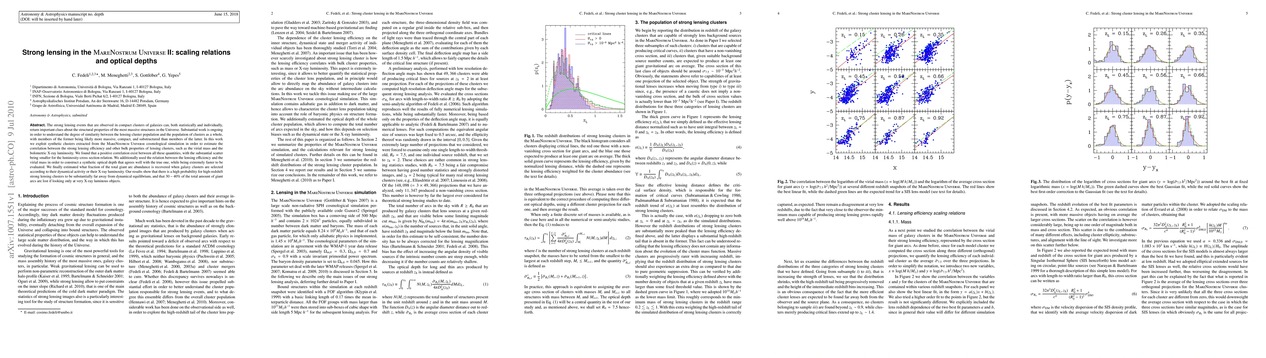 This paper investigates the correlation between strong lensing efficiency and bulk properties of clusters from the MareNostrum Universe simulation, finding a positive correlation between lensing efficiency, virial mass, and bolometric X-ray luminosity. It also constructs a synthetic optical depth model and estimates the fraction of giant arcs lost when selecting clusters based on X-ray luminosity, revealing that high-redshift strong lensing clusters are often far from equilibrium.