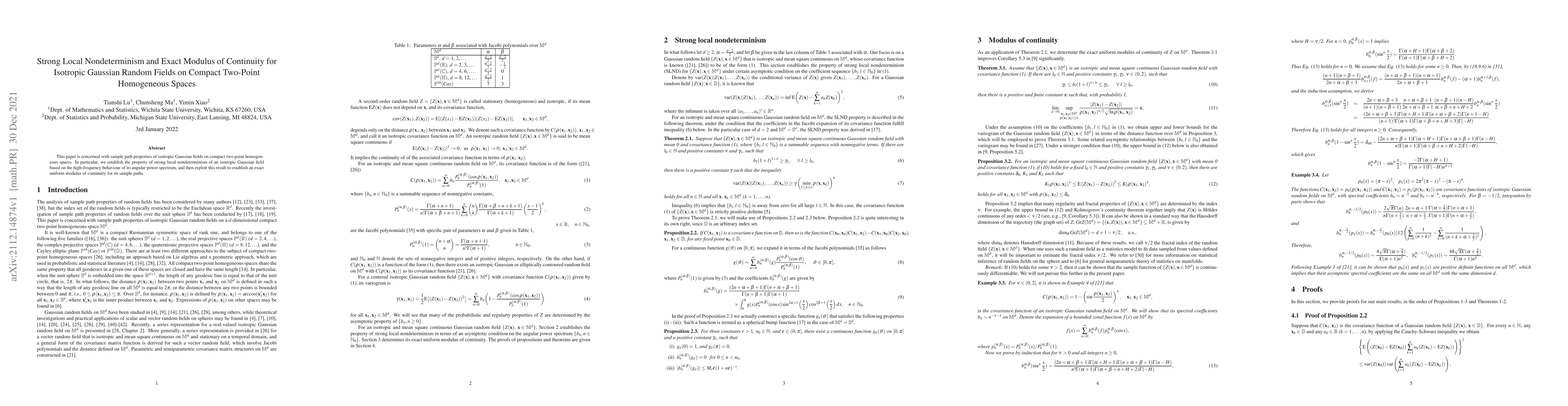 This paper investigates the sample path properties of isotropic Gaussian fields on compact two-point homogeneous spaces, demonstrating strong local nondeterminism via high-frequency angular power spectrum behavior, and deriving an exact uniform modulus of continuity for the field's sample paths.