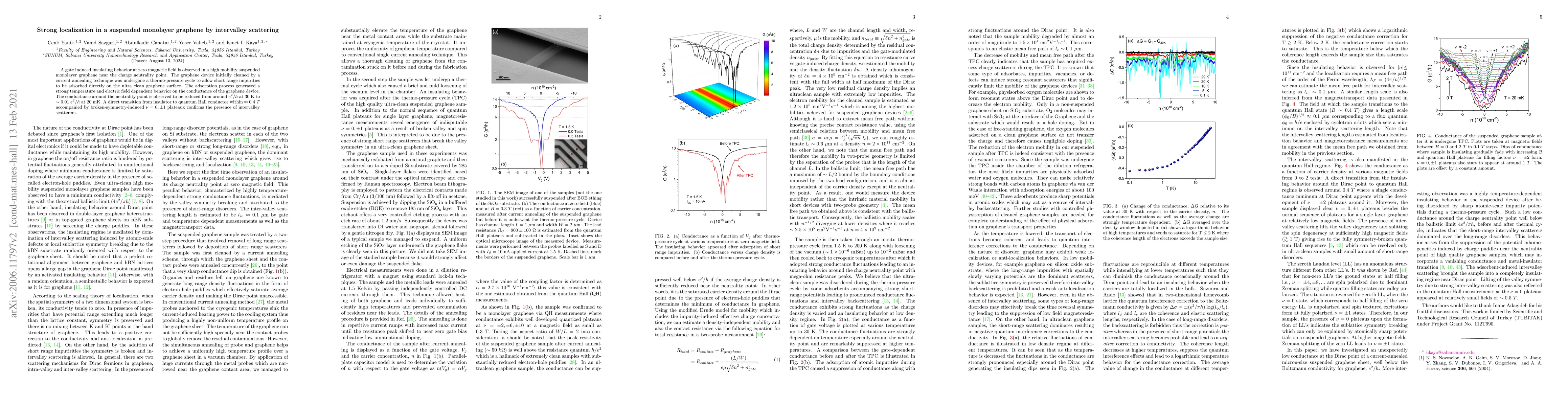 This study reveals strong localization in a suspended monolayer graphene due to intervalley scattering, leading to insulating behavior at zero magnetic field. The conductance significantly drops with temperature, transitioning from insulator to quantum Hall conductor within a small magnetic field range, indicating the presence of intervalley scatterers.