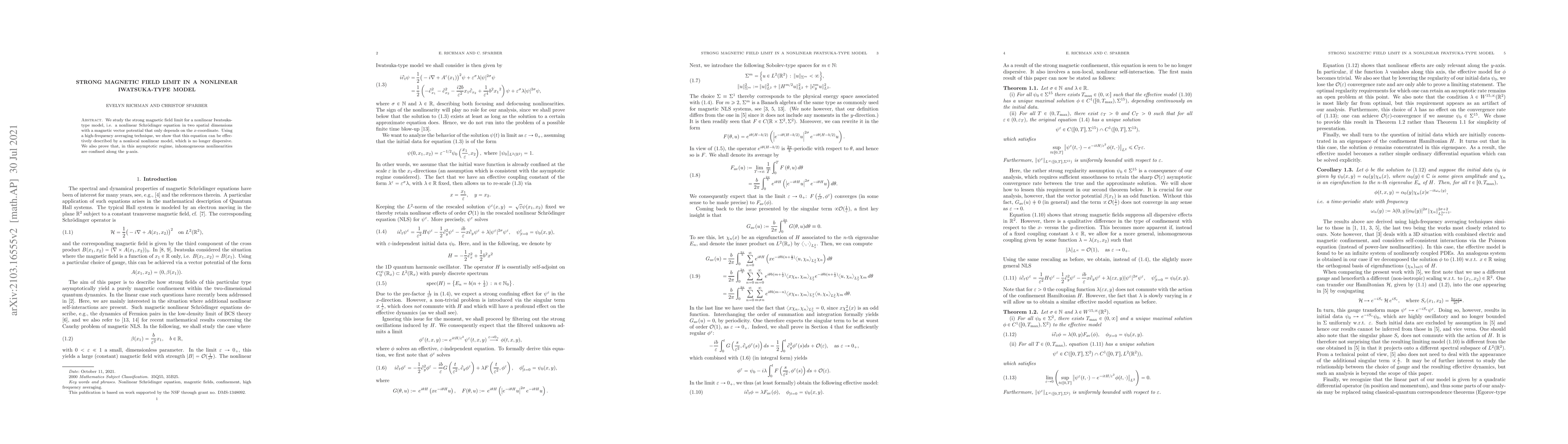 We study the strong magnetic field limit for a nonlinear Iwatsuka-type model, i.e. a nonlinear Schr\"odinger equation in two spatial dimensions with a magnetic vector potential that only depends on the $x$-coordinate. Using a high-frequency averaging technique, we show that this equation can be effectively described by a nonlocal nonlinear model, which is no longer dispersive. We also prove that, in this asymptotic regime, inhomogeneous nonlinearities are confined along the $y$-axis.