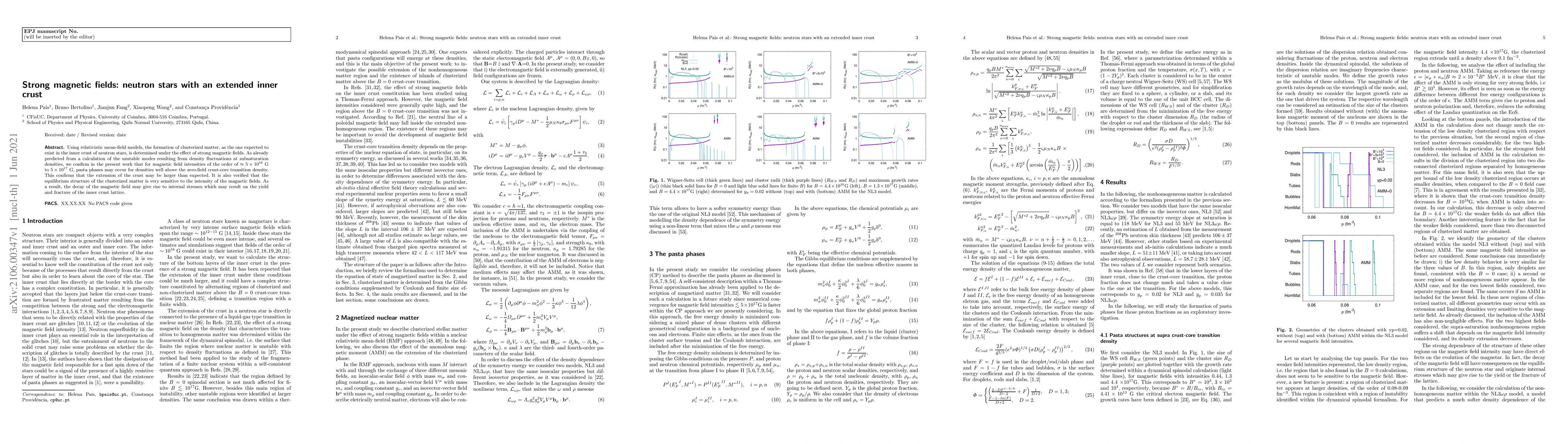 This paper investigates the impact of strong magnetic fields on neutron stars' inner crust using relativistic mean-field models, confirming that magnetic fields of $5 \times 10^{16}$ to $5 \times 10^{17}$ G can extend the crust's formation to densities above the typical crust-core transition density, potentially leading to internal stresses and structural fractures as the fields decay.