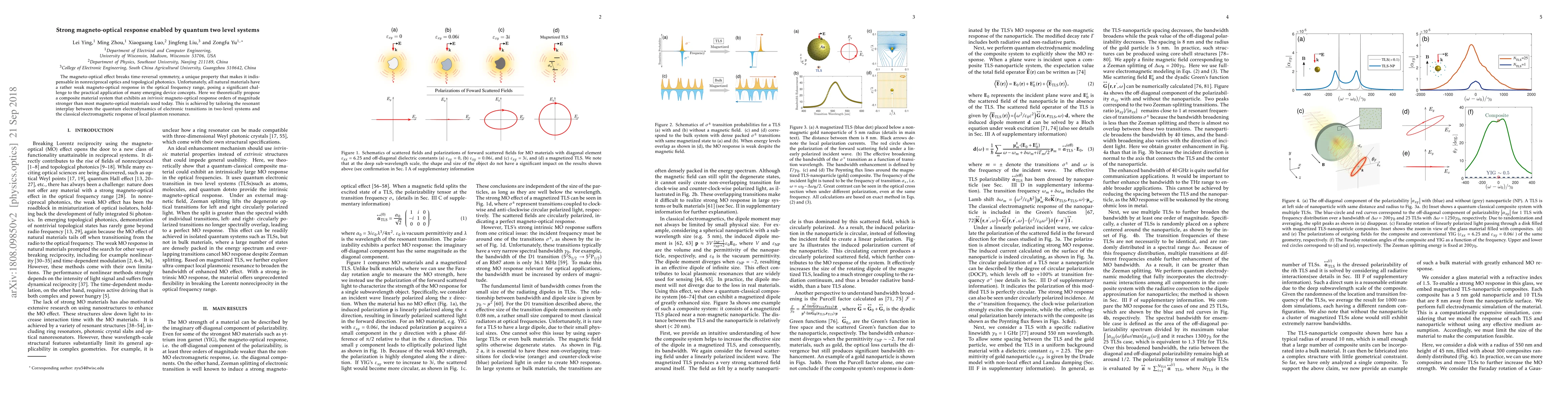 The magneto-optical effect breaks time-reversal symmetry, a unique property that makes it indispensable in nonreciprocal optics and topological photonics. Unfortunately, all natural materials have a rather weak magneto-optical response in the optical frequency range, posing a significant challenge to the practical application of many emerging device concepts. Here we theoretically propose a composite material system that exhibits an intrinsic magneto-optical response orders of magnitude stronger than most magneto-optical materials used today. This is achieved by tailoring the resonant interplay between the quantum electrodynamics of electronic transitions in two-level systems and the classical electromagnetic response of local plasmon resonance.