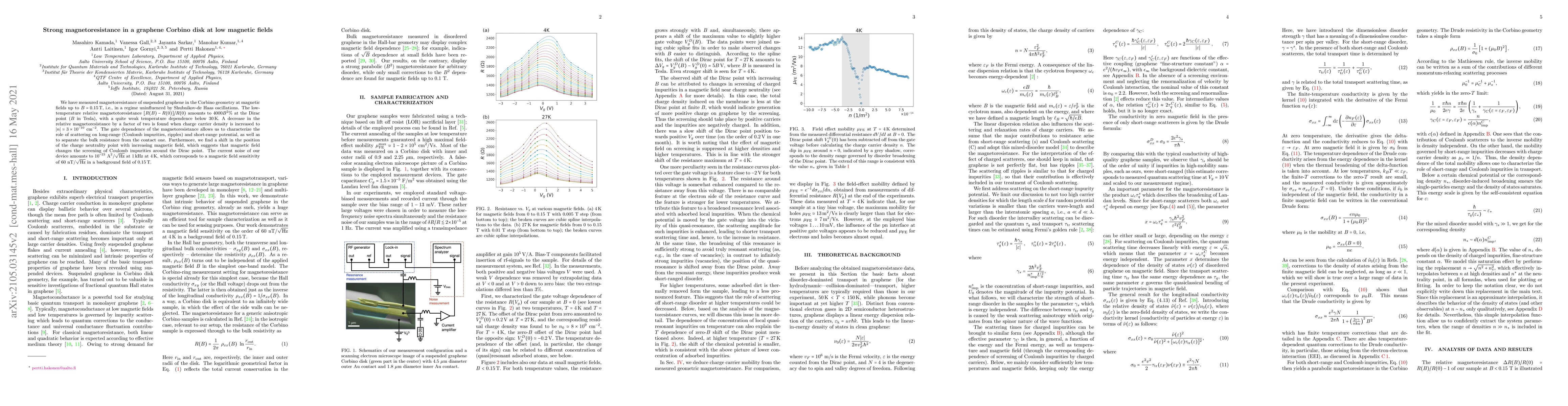 The paper presents a detailed analysis of magnetoresistance in suspended graphene Corbino disks at low magnetic fields, separating bulk and contact resistance contributions, and characterizing scattering mechanisms.