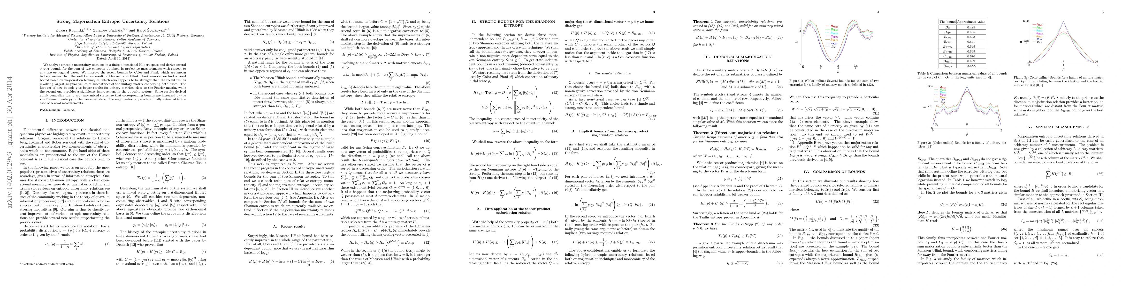 This paper derives improved entropic uncertainty relations for projective measurements in a finite-dimensional Hilbert space, surpassing recent bounds by Coles and Piani. The authors introduce novel strong bounds based on majorization techniques, offering better results for different types of unitary matrices and extending the approach to multiple measurements.