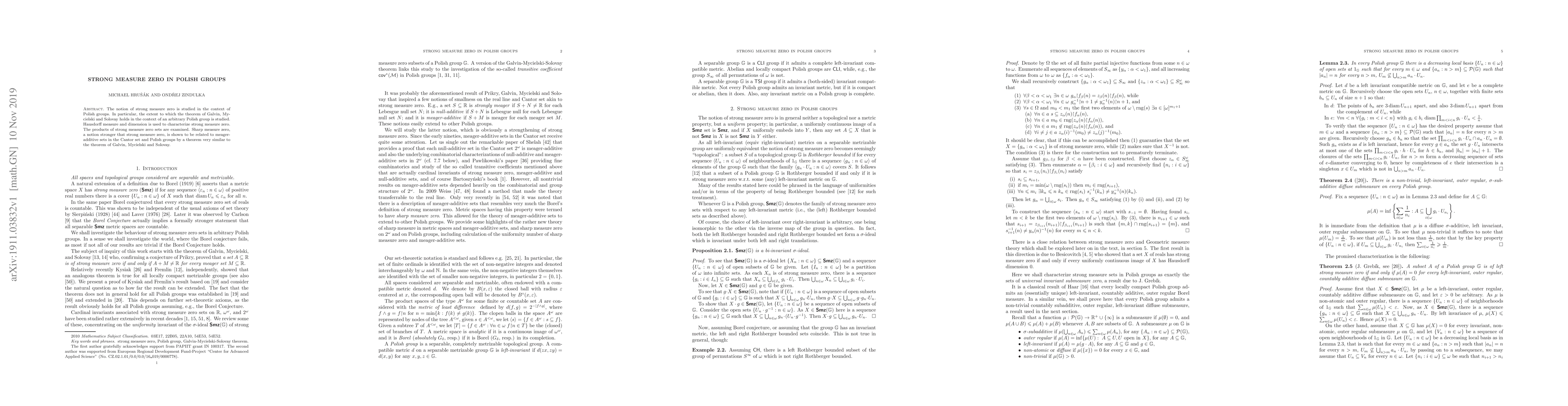 The notion of strong measure zero is studied in the context of Polish groups. In particular, the extent to which the theorem of Galvin, Mycielski and Solovay holds in the context of an arbitrary Polish group is studied. Hausdorff measure and dimension is used to characterize strong measure zero. The products of strong measure zero sets are examined. Sharp measure zero, a notion stronger that strong measure zero, is shown to be related to meageradditive sets in the Cantor set and Polish groups by a theorem very similar to the theorem of Galvin, Mycielski and Solovay.