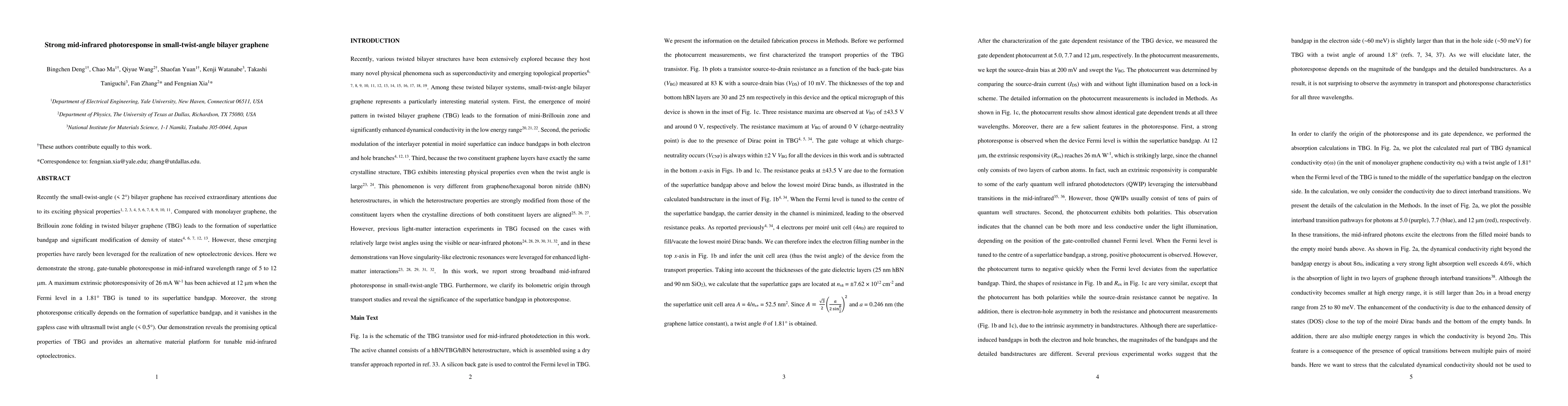 This paper demonstrates a strong, gate-tunable mid-infrared photoresponse in small-twist-angle bilayer graphene (TBG), achieving a maximum photoresponsivity of 26 mA/W at 12 µm when the Fermi level is tuned to the superlattice bandgap, highlighting TBG's potential for tunable mid-infrared optoelectronics.