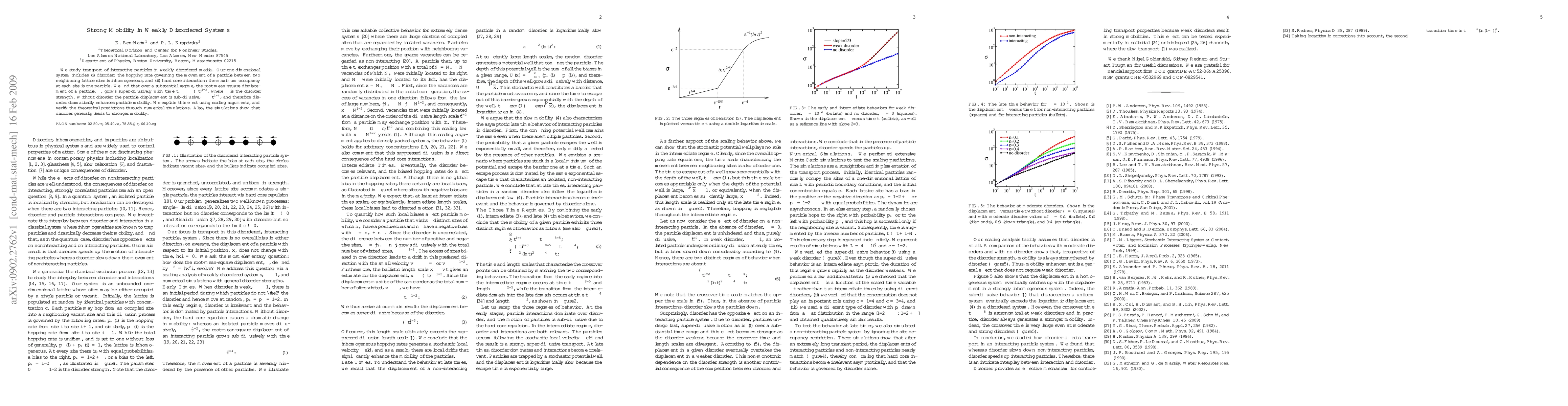 We study transport of interacting particles in weakly disordered media. Our one-dimensional system includes (i) disorder: the hopping rate governing the movement of a particle between two neighboring lattice sites is inhomogeneous, and (ii) hard core interaction: the maximum occupancy at each site is one particle. We find that over a substantial regime, the root-mean-square displacement of a particle, sigma, grows super-diffusively with time t, sigma ~ (epsilon t)^{2/3}, where epsilon is the disorder strength. Without disorder the particle displacement is sub-diffusive, sigma ~ t^{1/4}, and therefore disorder dramatically enhances particle mobility. We explain this effect using scaling arguments, and verify the theoretical predictions through numerical simulations. Also, the simulations show that disorder generally leads to stronger mobility.