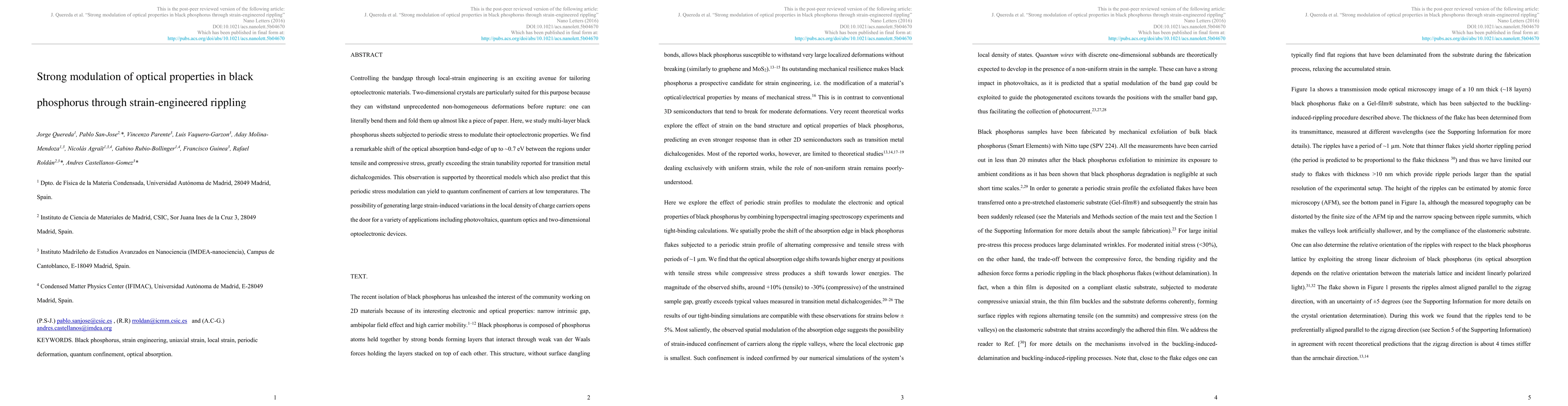 This study demonstrates that strain-engineered rippling in multi-layer black phosphorus can significantly modulate its optical properties, achieving a band-edge shift of up to ~0.7 eV. Theoretical models support these findings and suggest potential applications in photovoltaics, quantum optics, and advanced optoelectronic devices.
