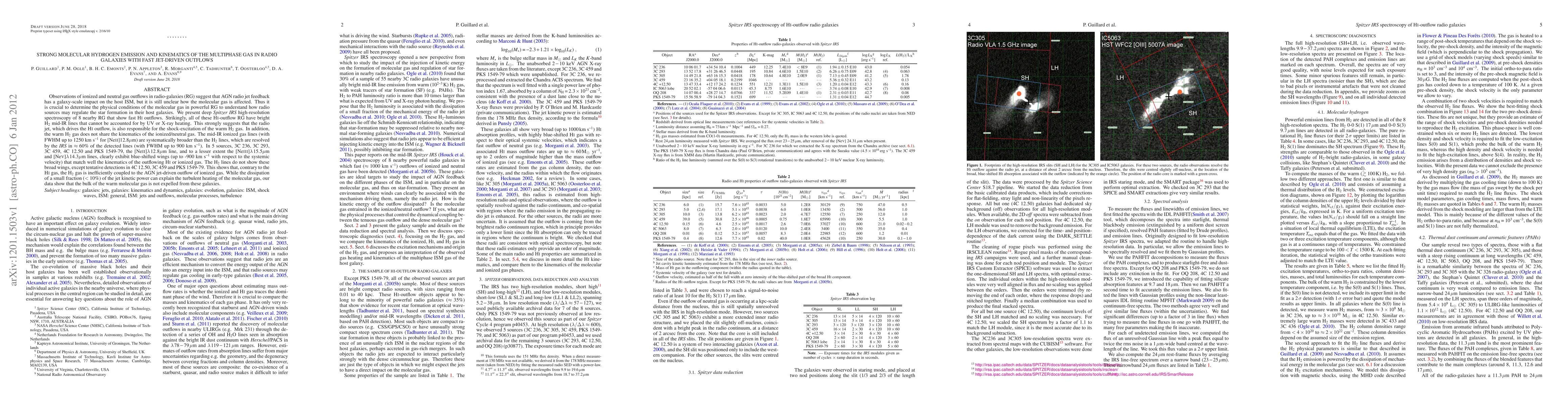 Observations of ionized and neutral gas outflows in radio-galaxies (RGs) suggest that AGN radio jet feedback has a galaxy-scale impact on the host ISM, but it is still unclear how the molecular gas is affected. We present deep Spitzer IRS spectroscopy of 8 RGs that show fast HI outflows. All of these HI-outflow RGs have bright H2 mid-IR lines that cannot be accounted for by UV or X-ray heating. This suggests that the radio jet, which drives the HI outflow, is also responsible for the shock-excitation of the warm H2 gas. In addition, the warm H2 gas does not share the kinematics of the ionized/neutral gas. The mid-IR ionized gas lines are systematically broader than the H2 lines, which are resolved by the IRS (with FWHM up to 900km/s) in 60% of the detected H2 lines. In 5 sources, the NeII line, and to a lesser extent the NeIII and NeV lines, exhibit blue-shifted wings (up to -900km/s with respect to the systemic velocity) that match the kinematics of the outflowing HI or ionized gas. The H2 lines do not show broad wings, except tentative detections in 3 sources. This shows that, contrary to the HI gas, the H2 gas is inefficiently coupled to the AGN jet-driven outflow of ionized gas. While the dissipation of a small fraction (<10%) of the jet kinetic power can explain the dynamical heating of the molecular gas, our data show that the bulk of the warm molecular gas is not expelled from these galaxies.