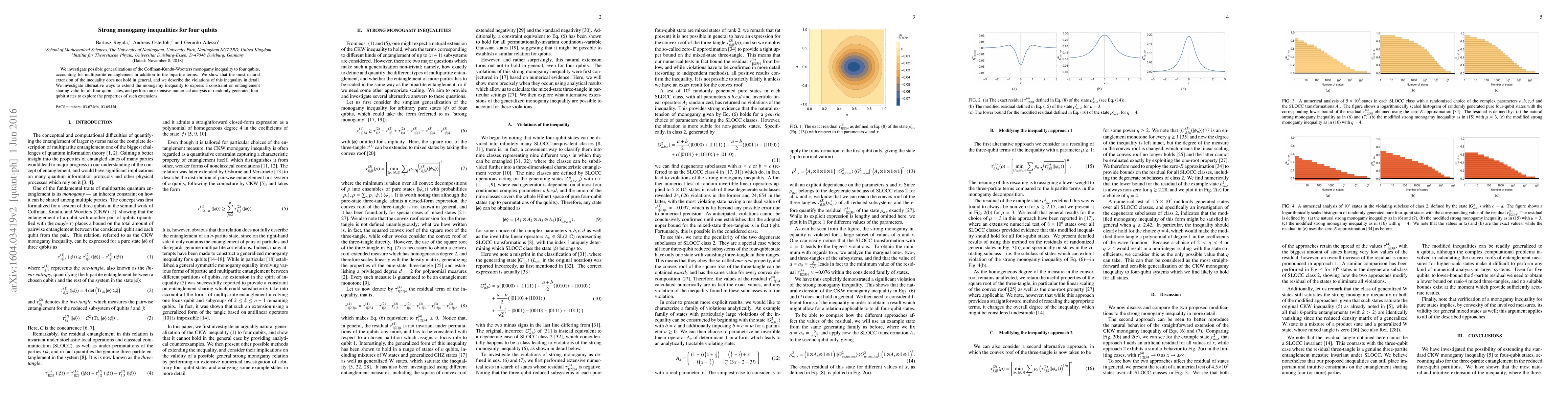 This paper explores the generalization of monogamy inequalities to four qubits, finding that the straightforward extension does not hold. It proposes alternative formulations to constrain entanglement sharing in four-qubit states and conducts numerical analysis on randomly generated states to examine these new constraints.