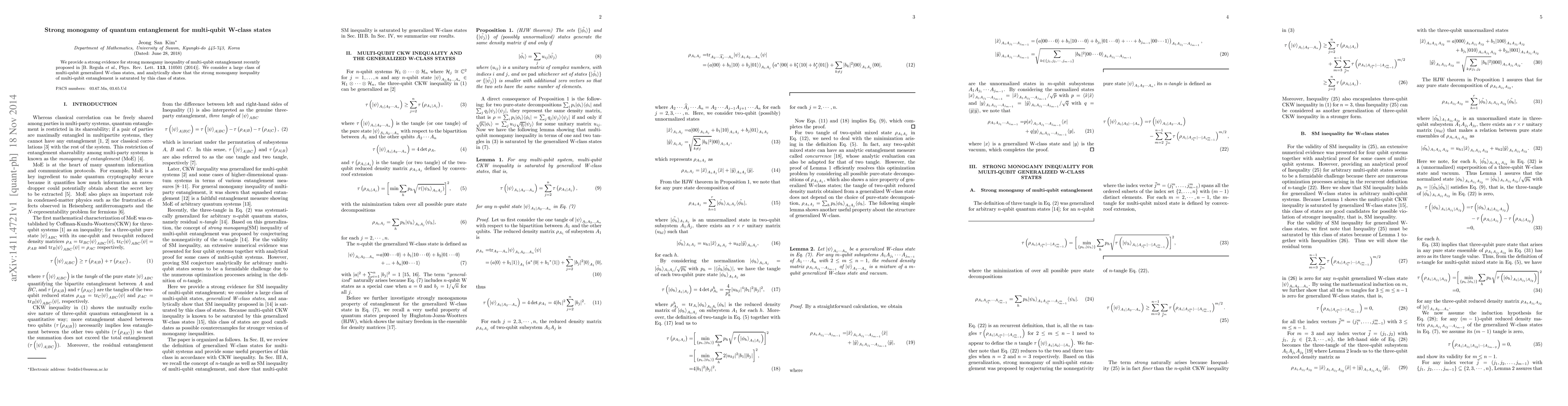 This paper provides strong evidence for the strong monogamy inequality of multi-qubit entanglement, specifically demonstrating that this inequality is saturated by a large class of generalized W-class states. The findings support the theoretical framework proposed by Regula et al. in 2014.