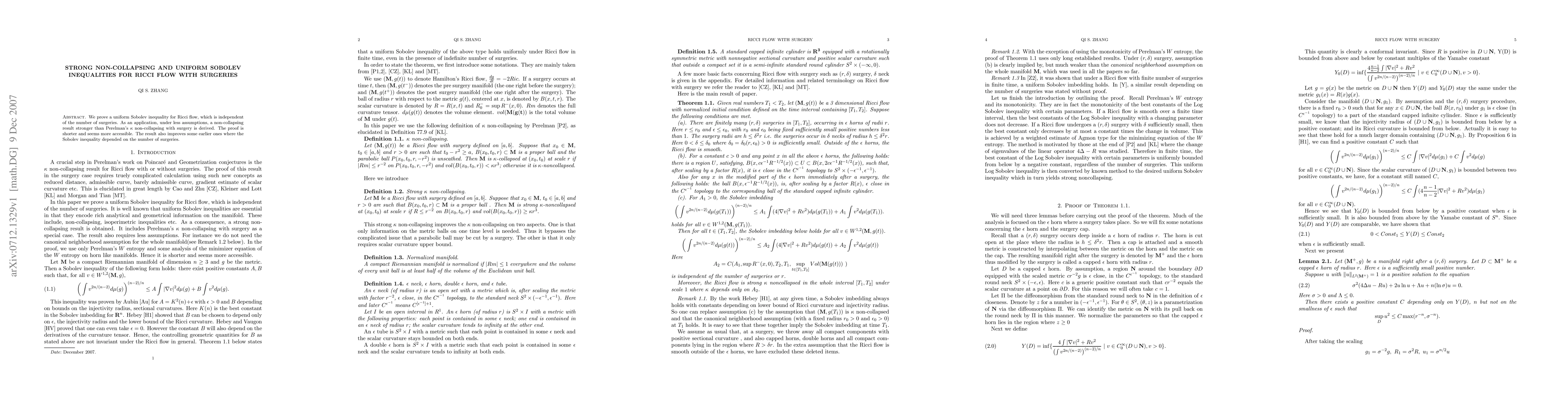 This paper establishes a uniform Sobolev inequality for Ricci flow with surgeries, independent of the number of surgeries, and derives a stronger non-collapsing result than Perelman's $\kappa$ non-collapsing, with a more accessible proof.