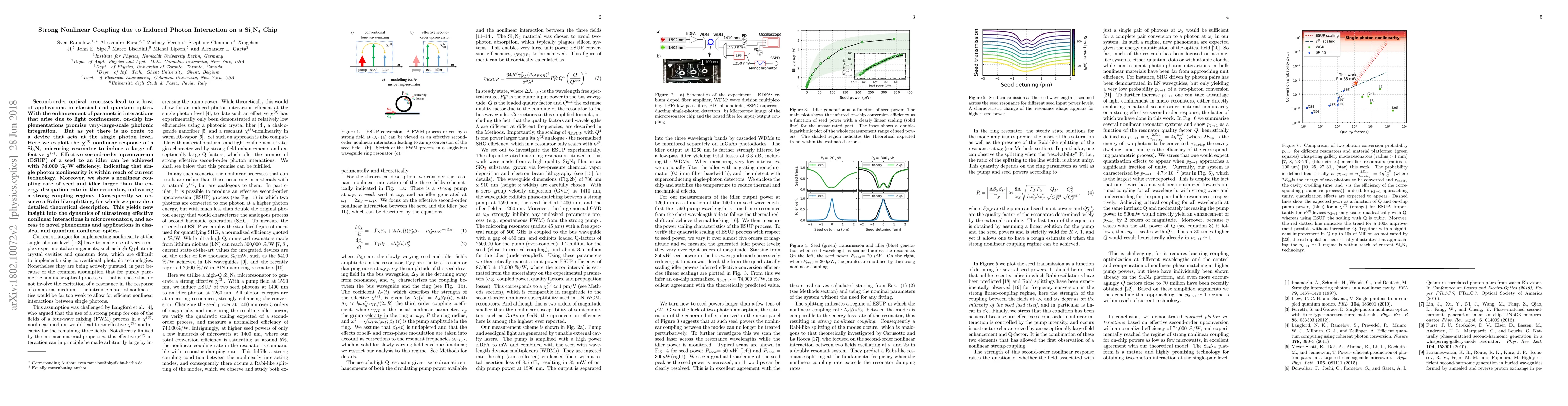 Second-order optical processes lead to a host of applications in classical and quantum optics. With the enhancement of parametric interactions that arise due to light confinement, on-chip implementations promise very-large-scale photonic integration. But as yet there is no route to a device that acts at the single photon level. Here we exploit the $\chi^{(3)}$ nonlinear response of a Si$_{3}$N$_{4}$ microring resonator to induce a large effective $\chi^{(2)}$. Effective second-order upconversion (ESUP) of a seed to an idler can be achieved with 74,000 %/W efficiency, indicating that single photon nonlinearity is within reach of current technology. Moreover, we show a nonlinear coupling rate of seed and idler larger than the energy dissipation rate in the resonator, indicating a strong coupling regime. Consequently we observe a Rabi-like splitting, for which we provide a detailed theoretical description. This yields new insight into the dynamics of ultrastrong effective nonlinear interactions in microresonators, and access to novel phenomena and applications in classical and quantum nonlinear optics.