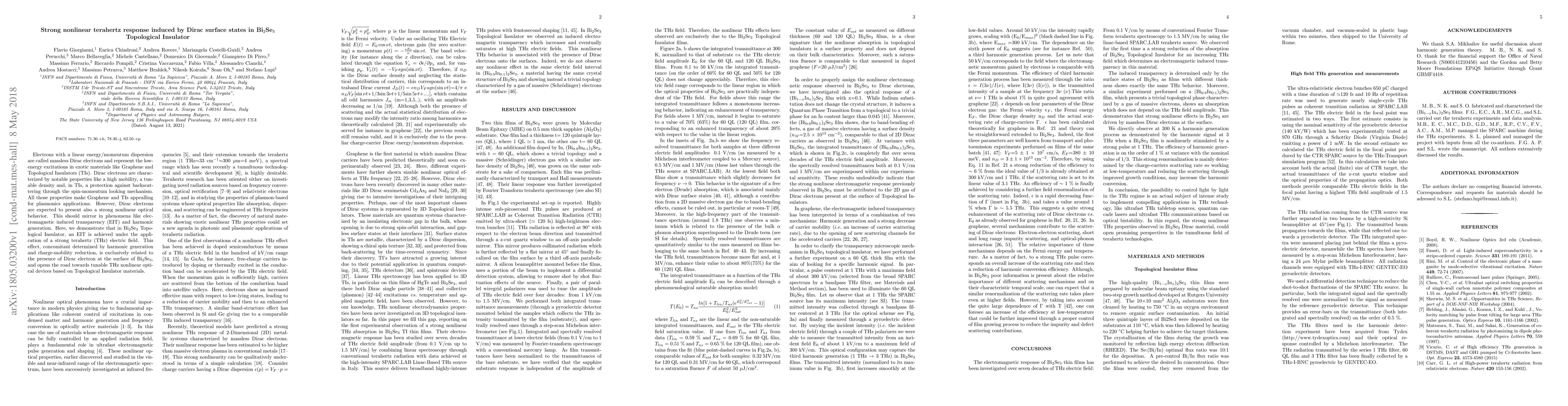 Electrons with a linear energy/momentum dispersion are called massless Dirac electrons and represent the low-energy excitations in exotic materials like Graphene and Topological Insulators (TIs). Dirac electrons are characterized by notable properties like a high mobility, a tunable density and, in TIs, a protection against backscattering through the spin-momentum looking mechanism. All those properties make Graphene and TIs appealling for plasmonics applications. However, Dirac electrons are expected to present also a strong nonlinear optical behavior. This should mirror in phenomena like electromagnetic induced transparency (EIT) and harmonic generation. Here, we demonstrate that in Bi2Se3 Topological Insulator, an EIT is achieved under the application of a strong terahertz (THz) electric field. This effect, concomitant determined by harmonic generation and charge-mobility reduction, is exclusively related to the presence of Dirac electron at the surface of Bi2Se_3, and opens the road towards tunable THz nonlinear optical devices based on Topological Insulator materials.