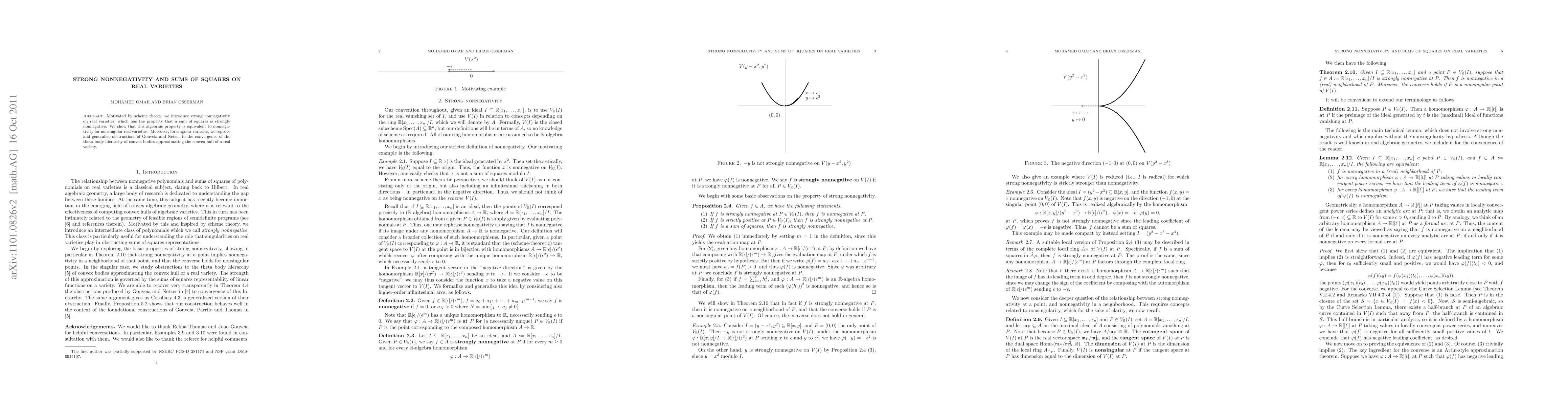 The paper introduces the concept of strong nonnegativity on real varieties and establishes its algebraic properties, linking it to sums of squares and theta bodies.