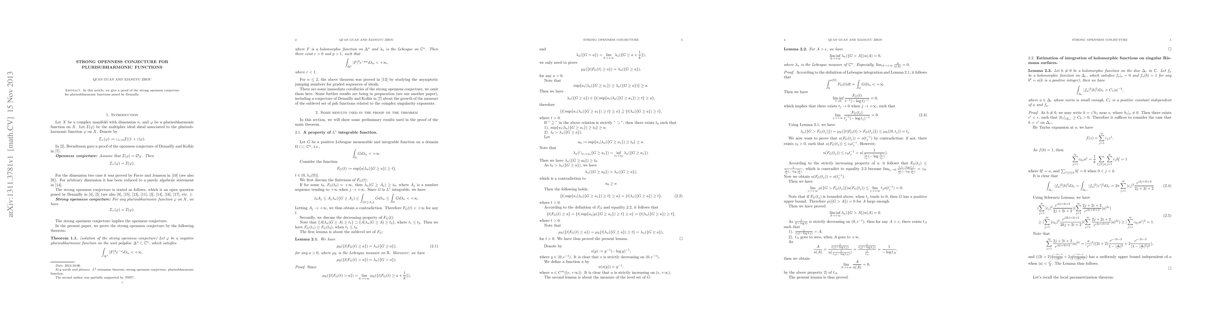 Summary: This paper presents a proof of the strong openness conjecture for plurisubharmonic functions, a significant result in complex geometry proposed by Demailly. The authors provide a rigorous mathematical argument to establish this conjecture.