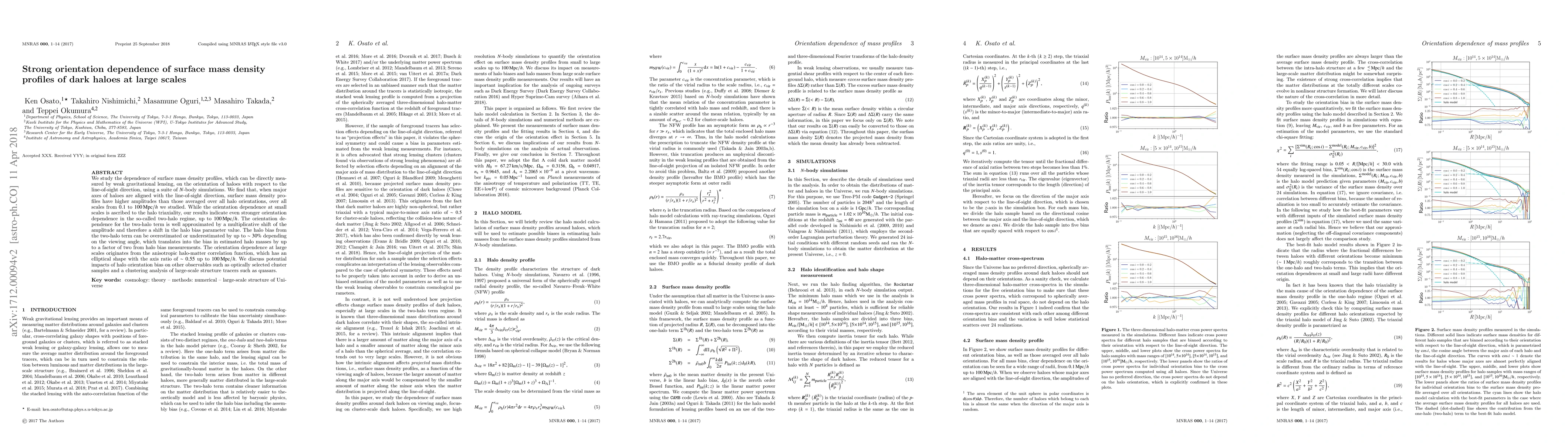 Weak gravitational lensing studies show that dark halo surface mass density profiles vary significantly depending on their orientation relative to the line-of-sight direction. This variation affects estimated halo masses by up to a factor of two.