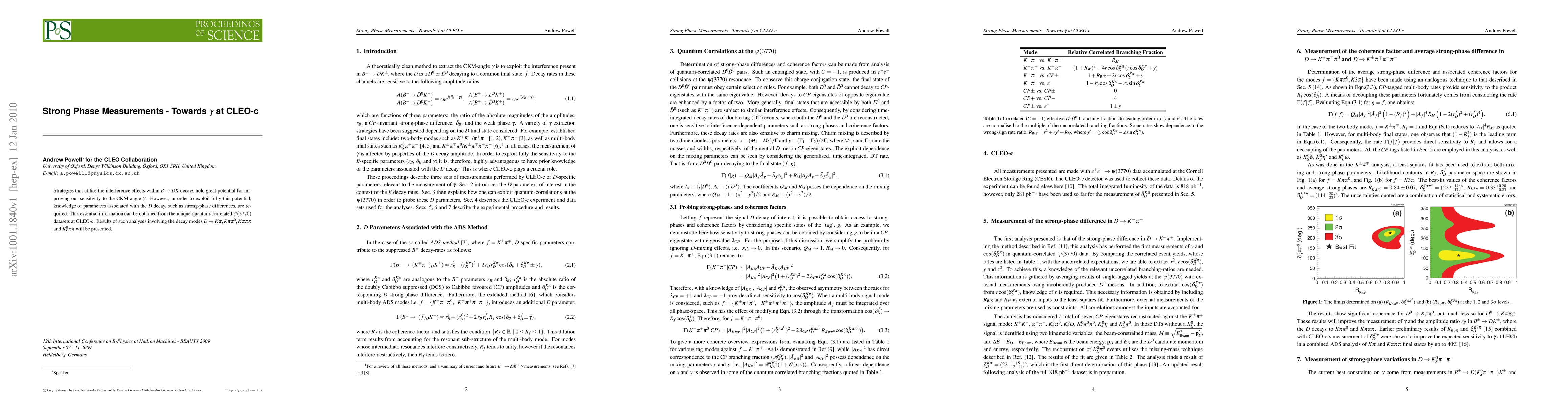 Strategies that utilise the interference effects within B -> DK decays hold great potential for improving our sensitivity to the CKM angle gamma. However, in order to exploit fully this potential, knowledge of parameters associated with the D decay, such as strong-phase differences, are required. This essential information can be obtained from the unique quantum-correlated psi(3770) datasets at CLEO-c. Results of such analyses involving the decay modes D -> Kpi, Kpipi^0, Kpipipi and K^0_Spipi will be presented.