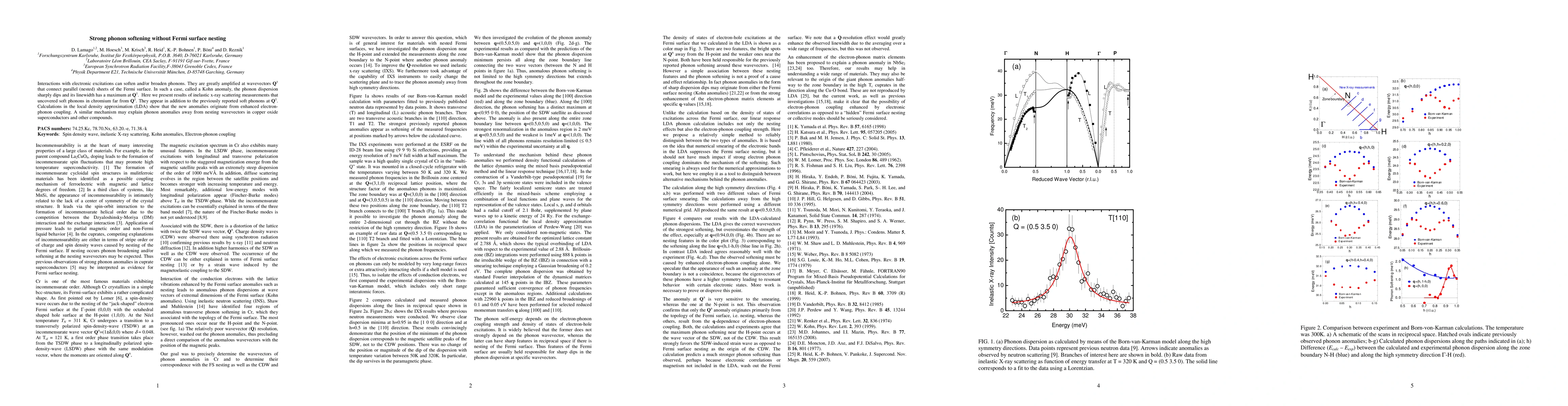 Interactions with electronic excitations can soften and/or broaden phonons. They are greatly amplified at wavevectors Q+- that connect parallel (nested) sheets of the Fermi surface. In such a case, called a Kohn anomaly, the phonon dispersion sharply dips and its linewidth has a maximum at Q+-. Here we present results of inelastic x-ray scattering measurements that uncovered soft phonons in chromium far from Q+-. They appear in addition to the previously reported soft phonons at Q+-. Calculations in the local density approximation (LDA) show that the new anomalies originate from enhanced electron-phonon coupling. A similar mechanism may explain phonon anomalies away from nesting wavevectors in copper oxide superconductors and other compounds.