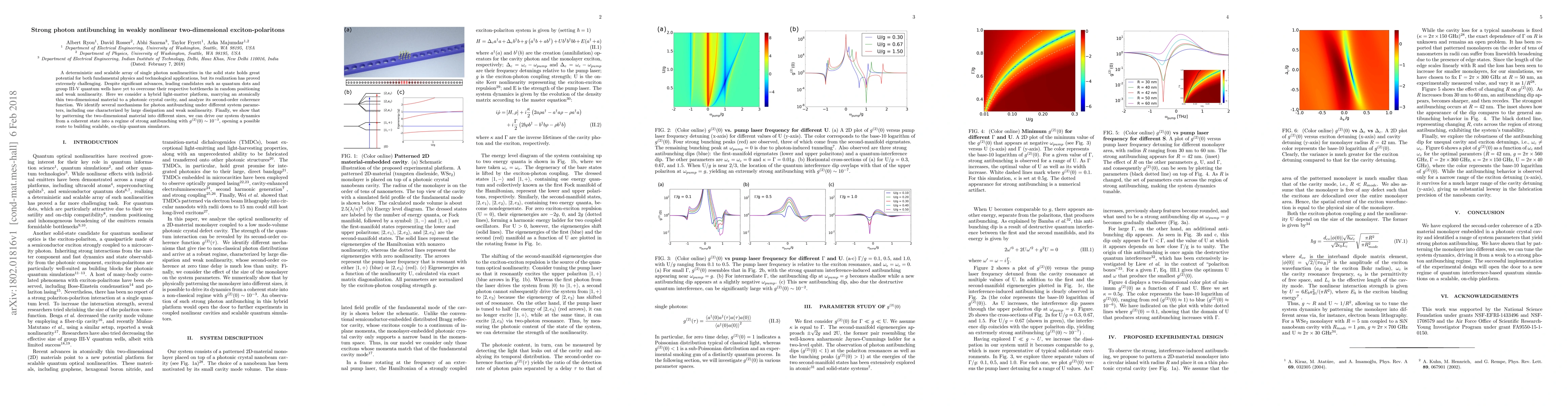 A deterministic and scalable array of single photon nonlinearities in the solid state holds great potential for both fundamental physics and technological applications, but its realization has proved extremely challenging. Despite significant advances, leading candidates such as quantum dots and group III-V quantum wells have yet to overcome their respective bottlenecks in random positioning and weak nonlinearity. Here we consider a hybrid light-matter platform, marrying an atomically thin two-dimensional material to a photonic crystal cavity, and analyze its second-order coherence function. We identify several mechanisms for photon antibunching under different system parameters, including one characterized by large dissipation and weak nonlinearity. Finally, we show that by patterning the two-dimensional material into different sizes, we can drive our system dynamics from a coherent state into a regime of strong antibunching with $g^{(2)}(0) \sim 10^{-3}$, opening a possible route to building scalable, on-chip quantum simulators.