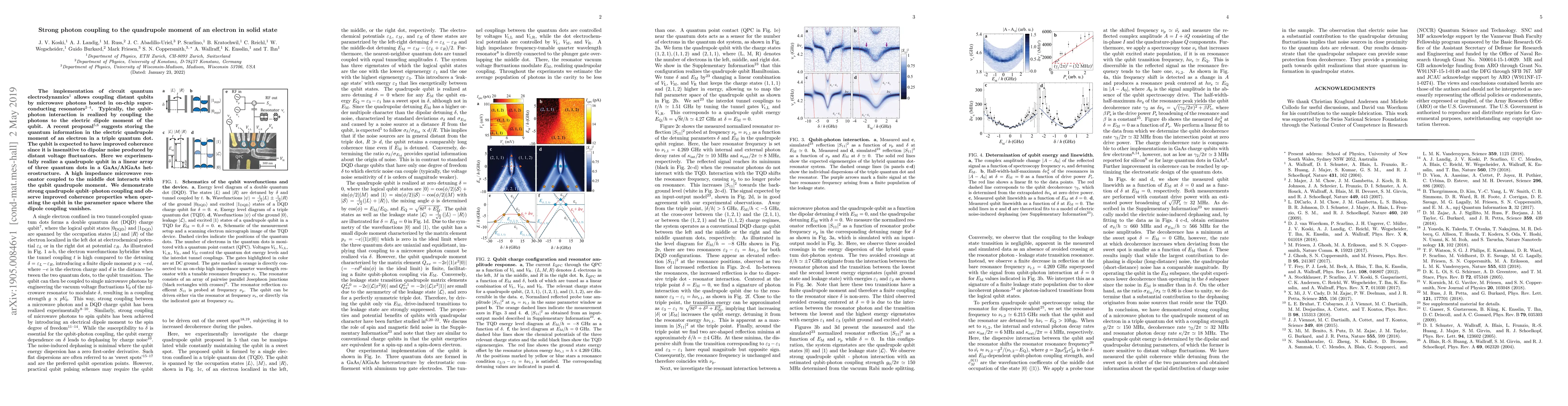 This paper experimentally realizes a quadrupole qubit in a triple quantum dot array, demonstrating strong coupling between microwave photons and the electron's quadrupole moment, which shows improved coherence compared to traditional dipole coupling.